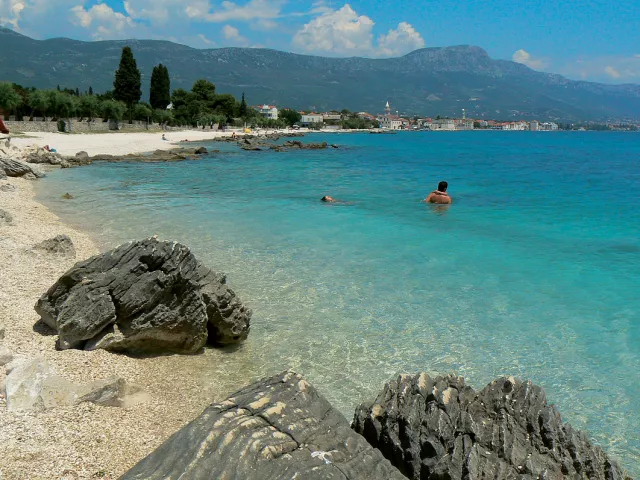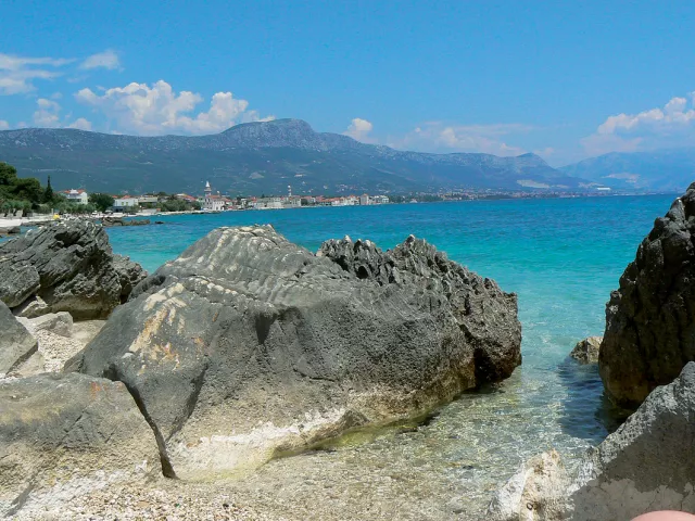 Kaštel Štafilić, centrum – 1,5 km, pláž / okruhliaková s pozvoľným vstupom do mora – 300 m, Trogir – 8 km, letisko Split – 3 km