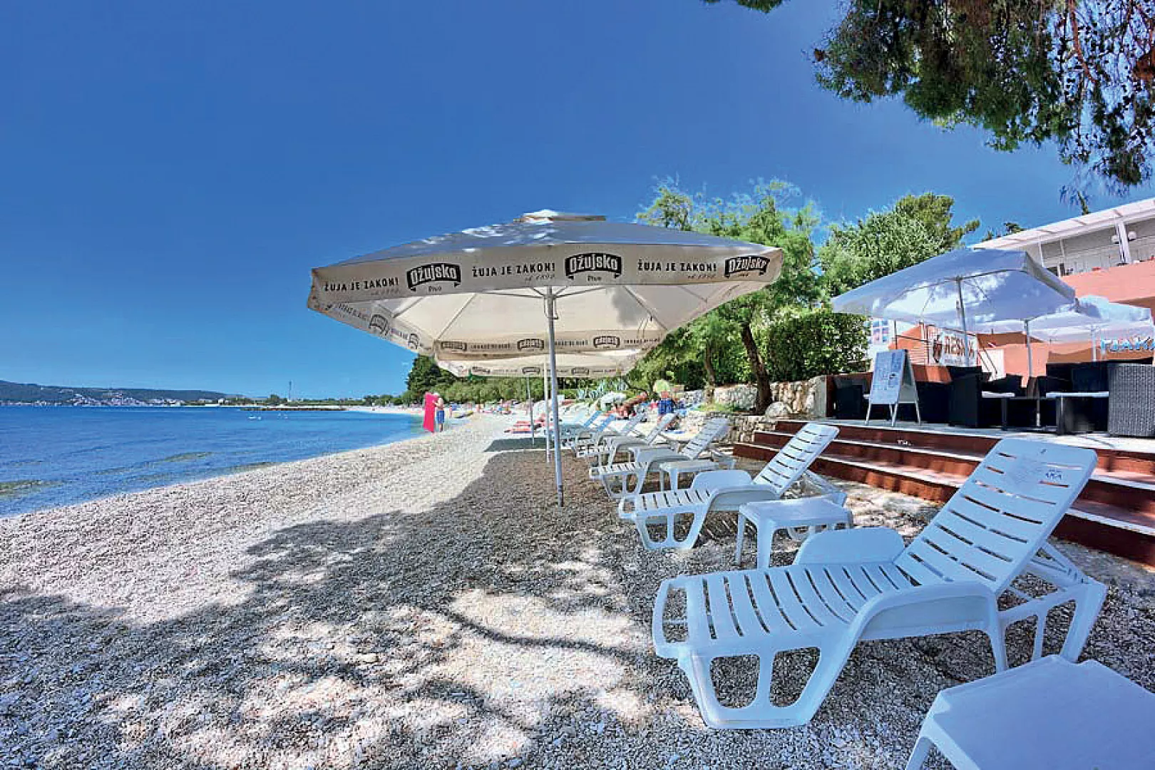 Hotel Resnik sa nachádza priamo pri pláži v pokojnej časti dalmátskeho pobrežia, len pár minút (cca 1 km) od letiska v Splite. Ponúka jednoduché a cenovo dostupné ubytovanie v bungalovoch a pavilónoch, ideálne pre rodiny s deťmi, skupiny priateľov aj všetkých, ktorí túžia po pohodovej dovolenke pri mori. Bungalovy a pavilóny sú rozmiestnené v zelene približne 100 metrov od hlavnej budovy, kde sa nachádza recepcia, reštaurácia, terasa a väčšina služieb, ktoré hotel poskytuje. Hostia si môžu vychutnať stravovanie formou all inclusive – raňajky, obedy a večere formou bufetu, nápoje počas dňa a príjemné posedenie s výhľadom na more. V areáli je tiež ihrisko pre deti a športové zázemie pre aktívny odpočinok. A ak zatúžite po spoznávaní okolia, v dosahu nájdete množstvo krásnych miest, ktoré stoja za návštevu – od historických miest po prírodné zaujímavosti. Hotel Resnik je skvelým miestom, kde začína vaše letné dobrodružstvo.