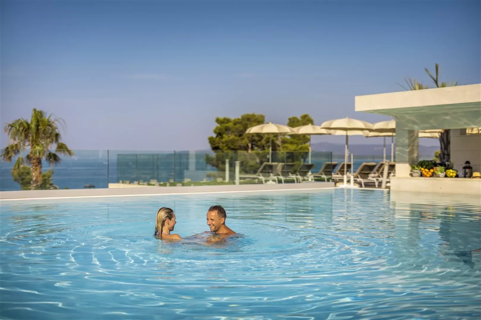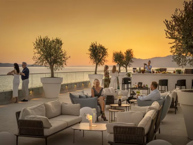 Pred hotelom sa rozprestiera upravená štrková pláž, kde sú zdarma k dispozícii slnečníky a ležadlá (v obmedzenom počte). K dispozícii je aj plážový bar a služba s hotelovými uterákmi.