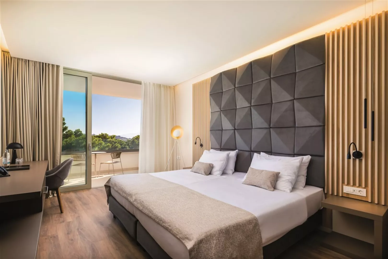 Izby sú moderne zariadené a klimatizované, vybavené SAT TV, minibarom, telefónom, trezorom a bezplatným Wi-Fi. Rôzne typy izieb ponúkajú rôznu kapacitu, vrátane izieb CLASSIC, DELUXE a LUXURY s balkónom a čiastočným alebo plným výhľadom na more.