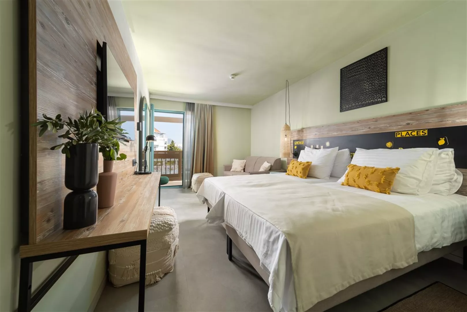 Izby hotela sú klimatizované a ponúkajú 2 lôžka s možnosťou prístelky. Každá izba má sprchu/WC, fén, telefón, Smart TV a balkón orientovaný na morskú stranu.