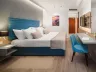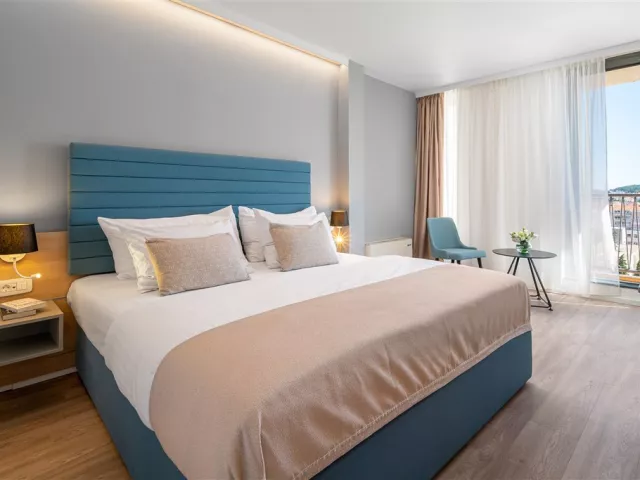 Izby sú klimatizované s kapacitou pre 2 osoby a možnosťou prístelky. Vybavenie izieb zahŕňa sprchu/WC, SAT TV, telefón, minibar, trezor, Wi-Fi zdarma, fén a balkón s bočným výhľadom na more.