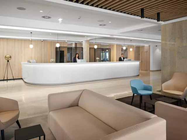 Kompletne zrenovovaný, viacposchodový hotel modernej architektúry poskytuje priamy prístup na pláž. Na pláži sú k dispozícii ležadlá a slnečníky za poplatok.