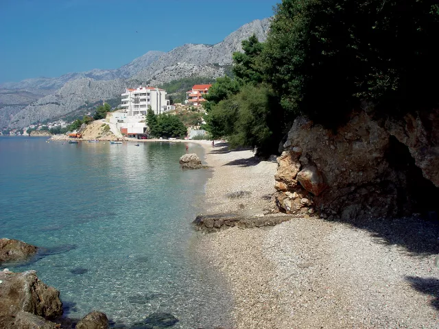 Nemira, centrum - 400 m, pláž / okruhliaková s pozvoľným vstupom do vody - 150 m, Omiš - 2,5 km, letisko Split - 48 km