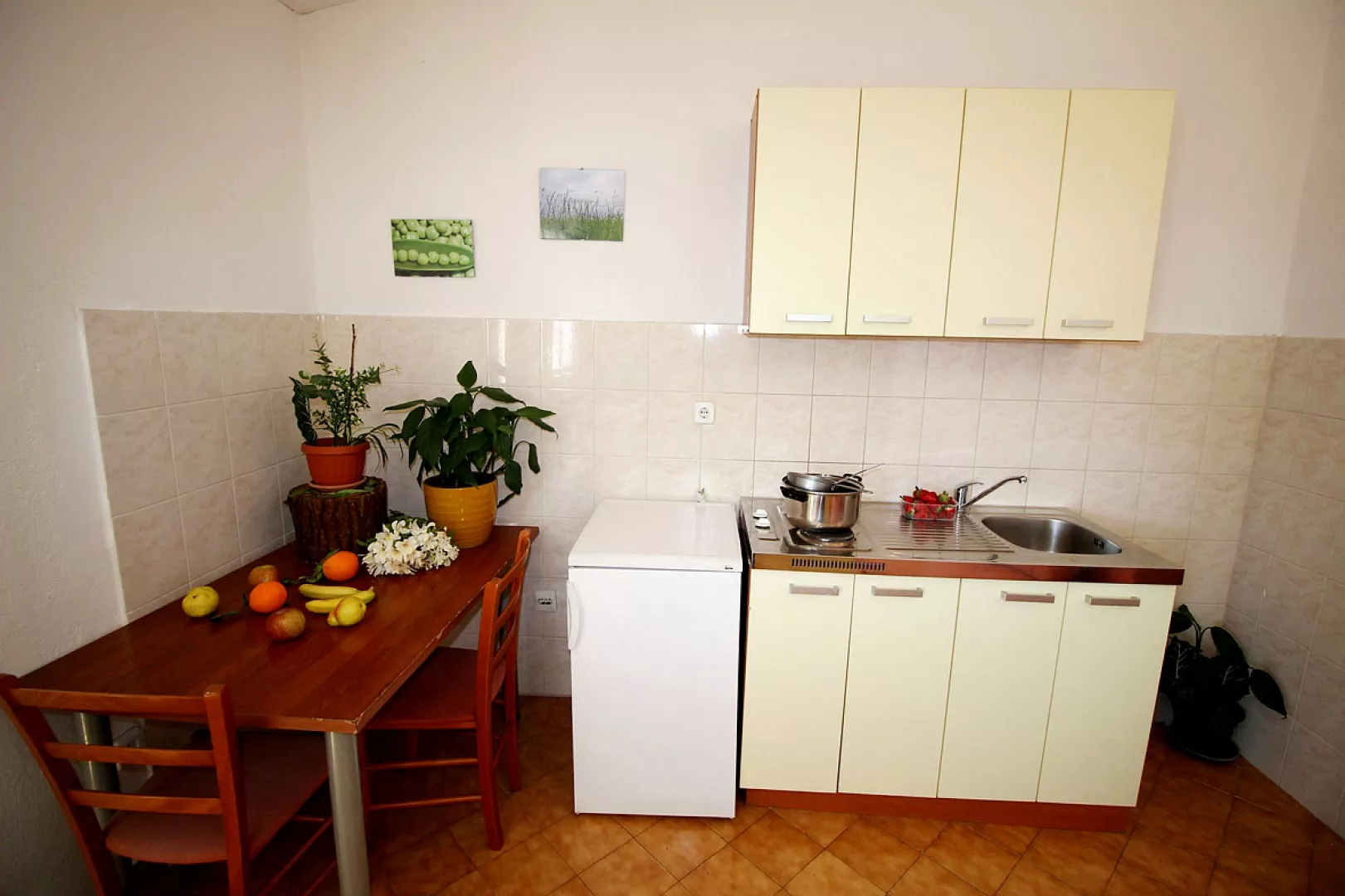 Vila ponúka dve štúdiá s manželským lôžkom a dva apartmány pre 4 až 5 osôb, ktoré obsahujú dve dvojlôžkové spálne a obývaciu izbu s rozkladacou pohovkou. Každý apartmán je vybavený: