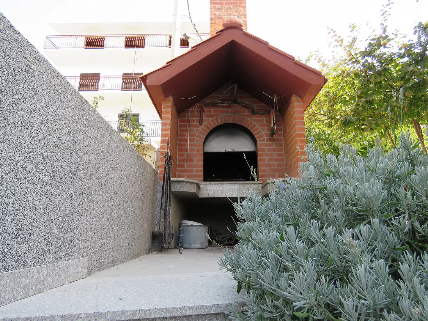 veľká spoločná terasa s grilom pre všetkých hostí v dome, vyhradené parkovisko