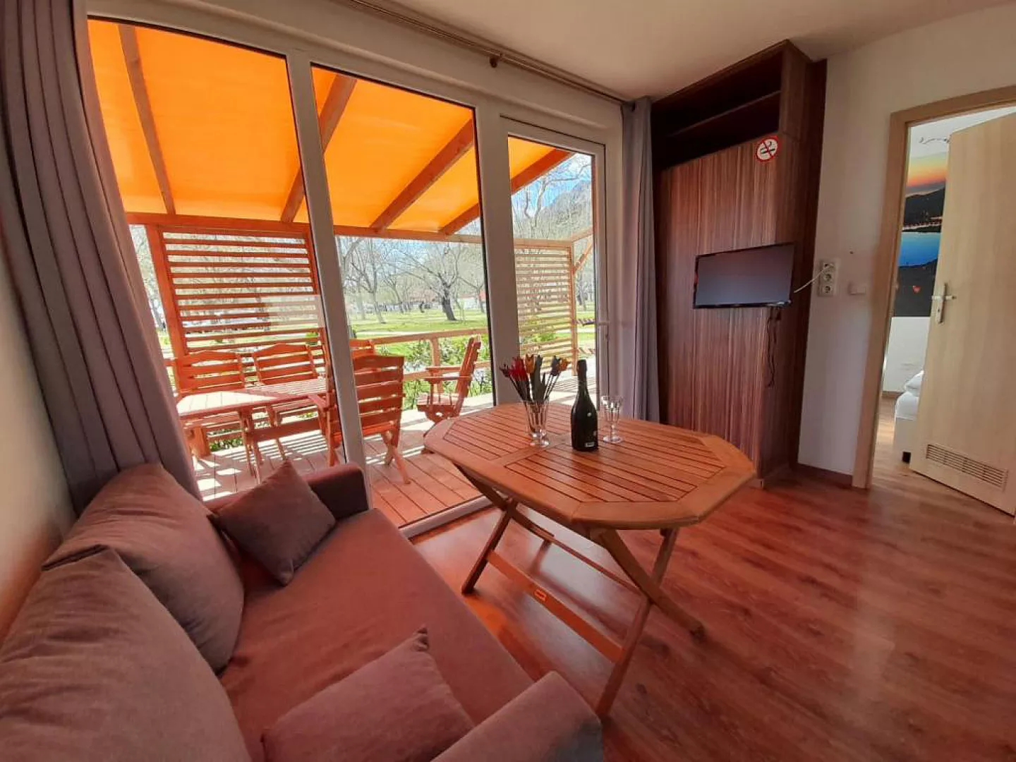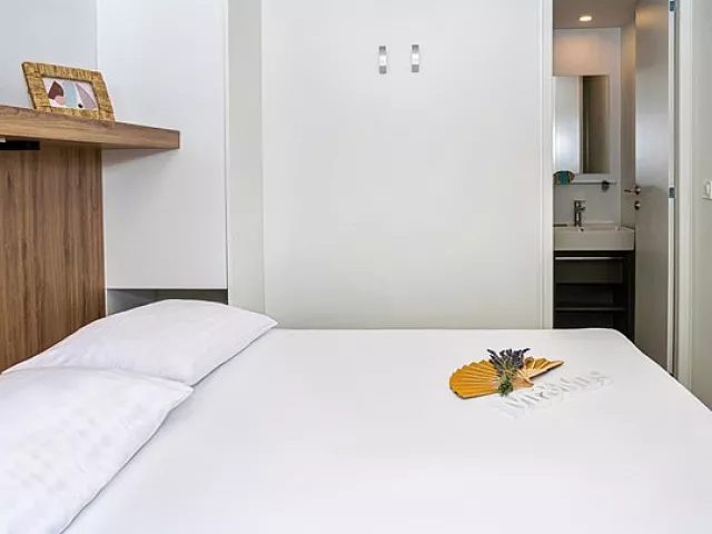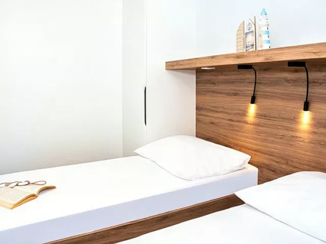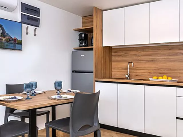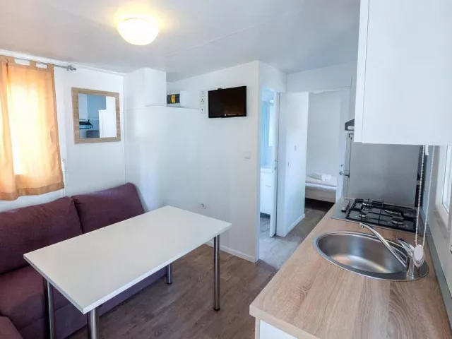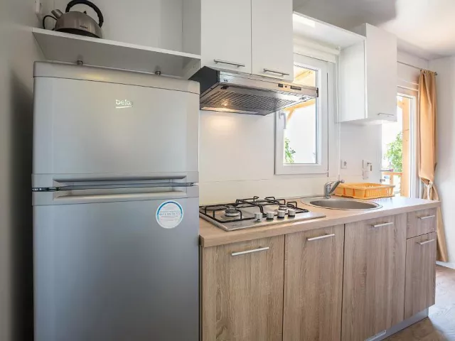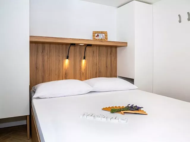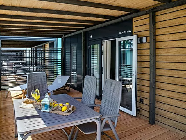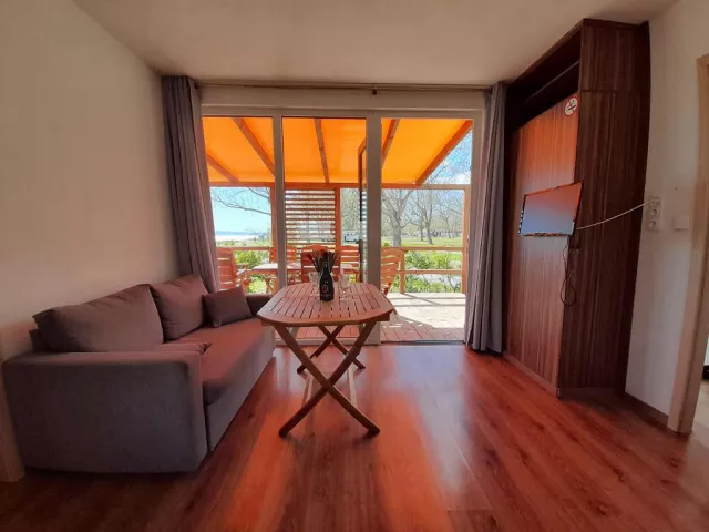 Ubytovanie pozostáva z samostatne stojacich mobilných domov typu Relax pre 4 až 6 osôb (Nord), ktoré majú dve zariadené 2-lôžkové spálne (rozmer dvojlôžka 160 x 200 cm). Sú vybavené kuchynkou s gaučom, ktorý môže slúžiť ako prístelka pre dve deti (rozmer cca 150 x 200 cm), klimatizáciou, televíziou, vlastnou kúpeľňou so sprchou a WC a krytou terasou s posedením. Na požiadanie sú k dispozícii aj iné typy ubytovania.