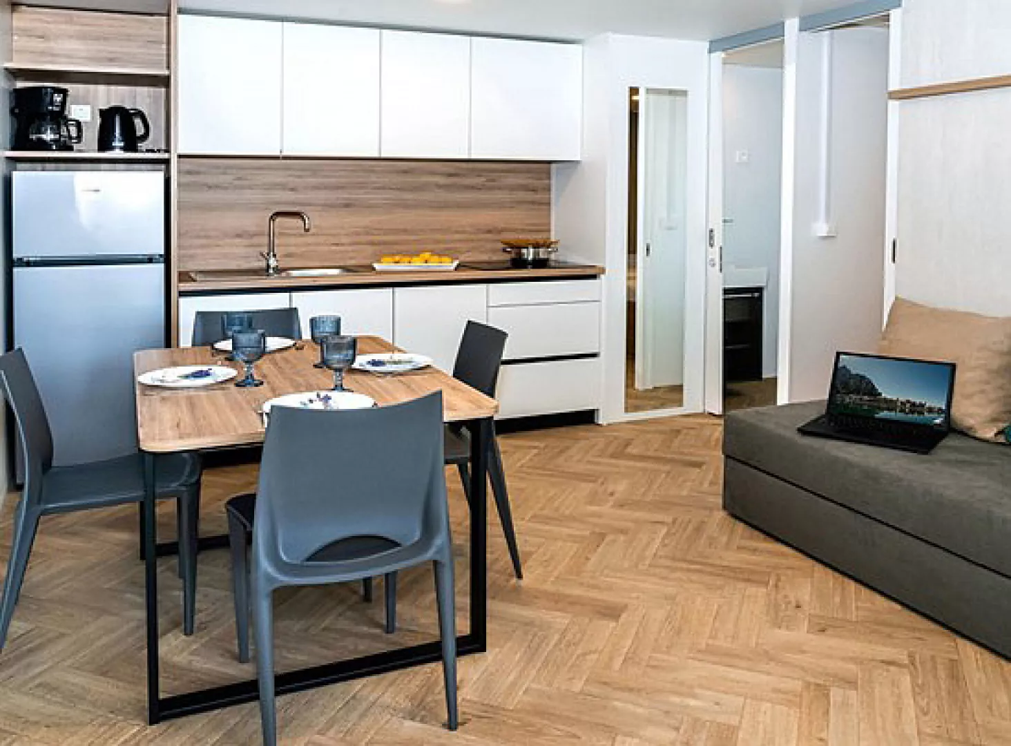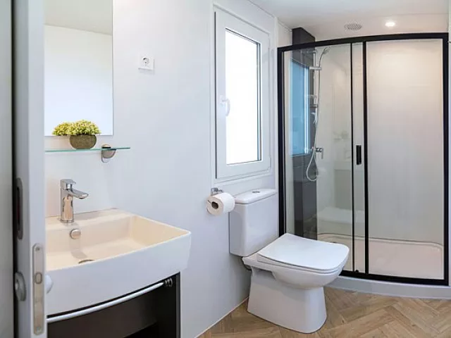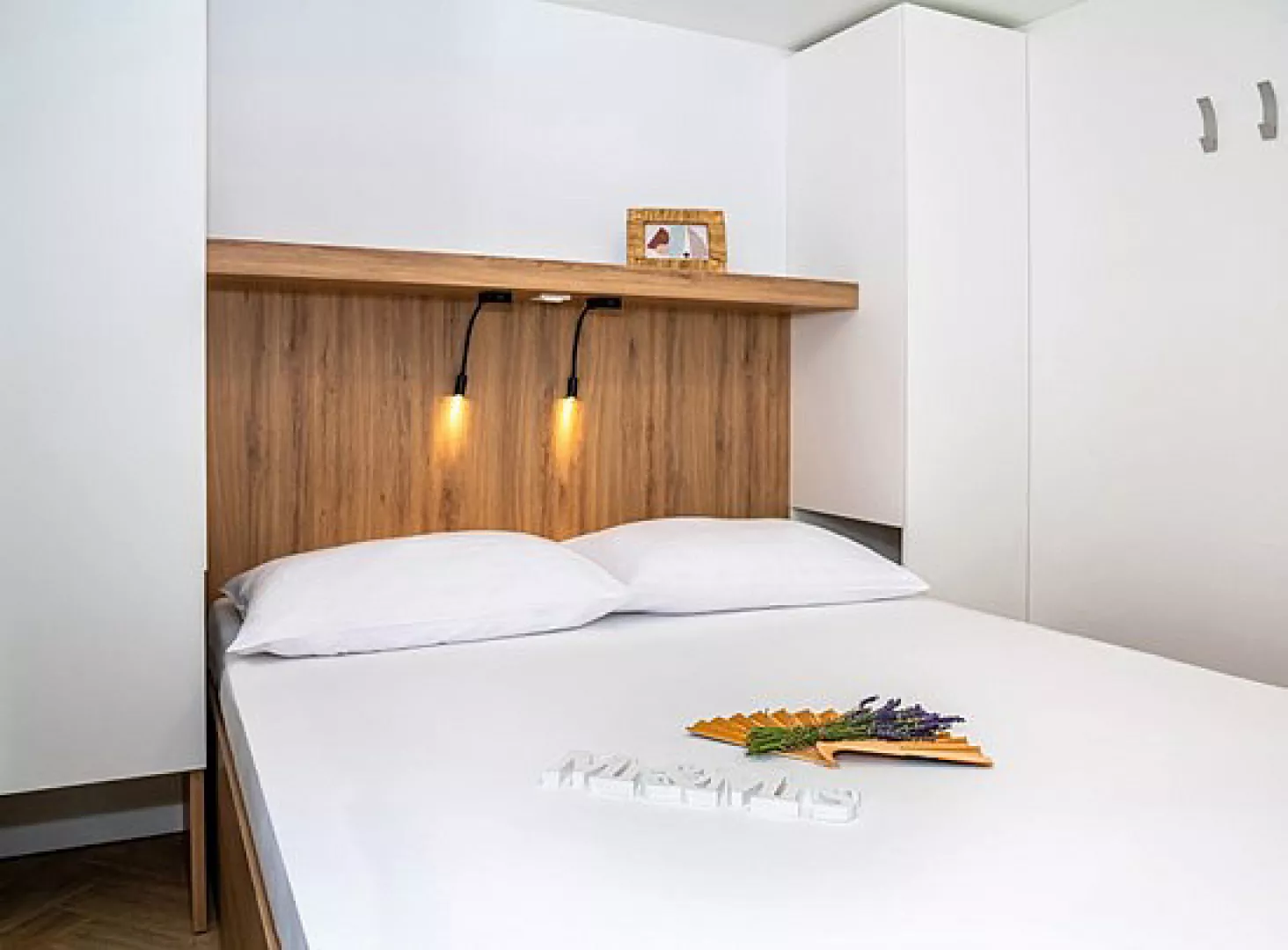 Ubytovanie pozostáva z samostatne stojacich mobilných domov typu Relax pre 4 až 6 osôb (Nord), ktoré majú dve zariadené 2-lôžkové spálne (rozmer dvojlôžka 160 x 200 cm). Sú vybavené kuchynkou s gaučom, ktorý môže slúžiť ako prístelka pre dve deti (rozmer cca 150 x 200 cm), klimatizáciou, televíziou, vlastnou kúpeľňou so sprchou a WC a krytou terasou s posedením. Na požiadanie sú k dispozícii aj iné typy ubytovania.