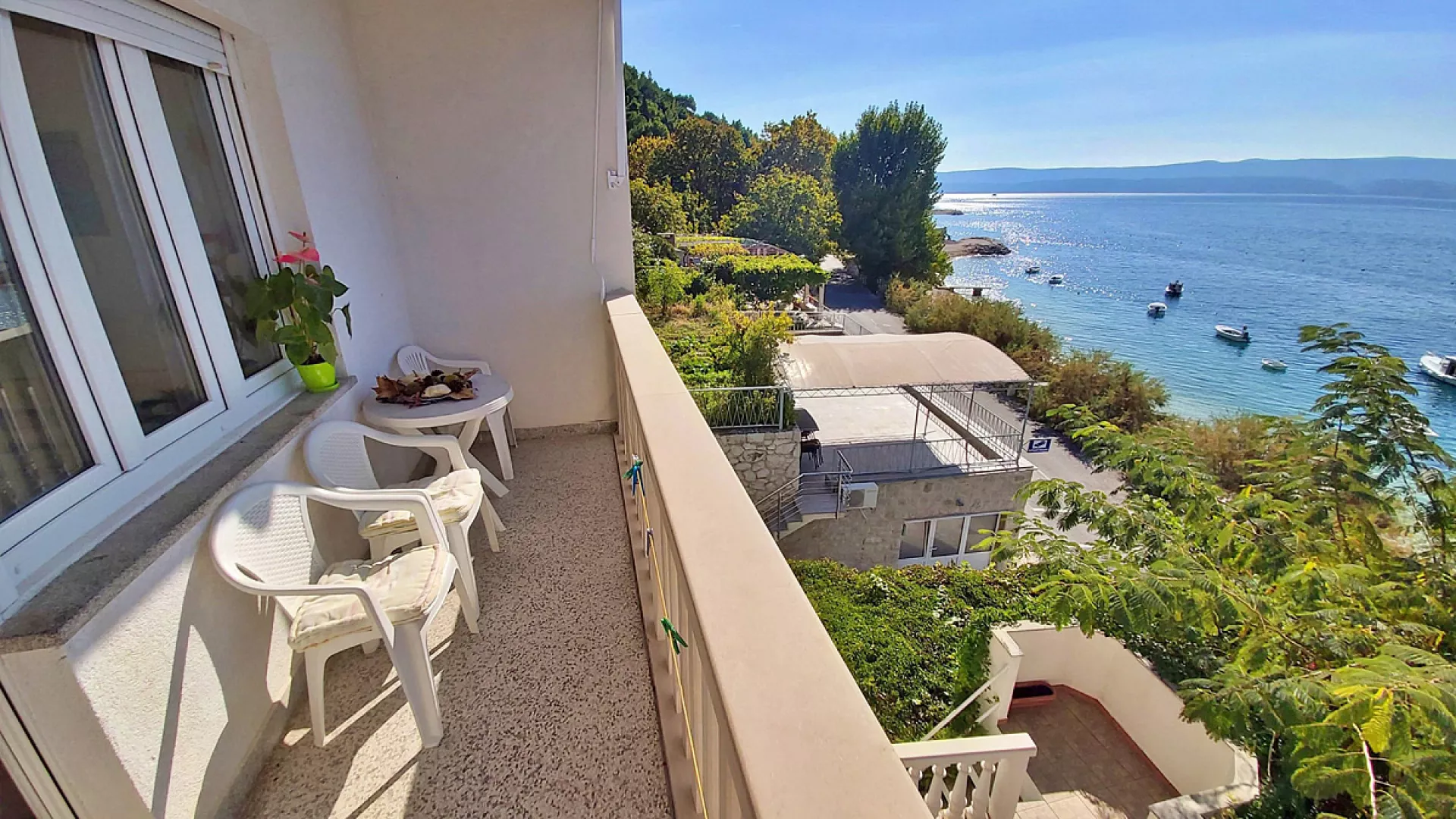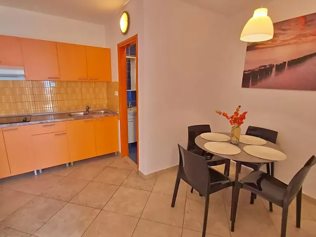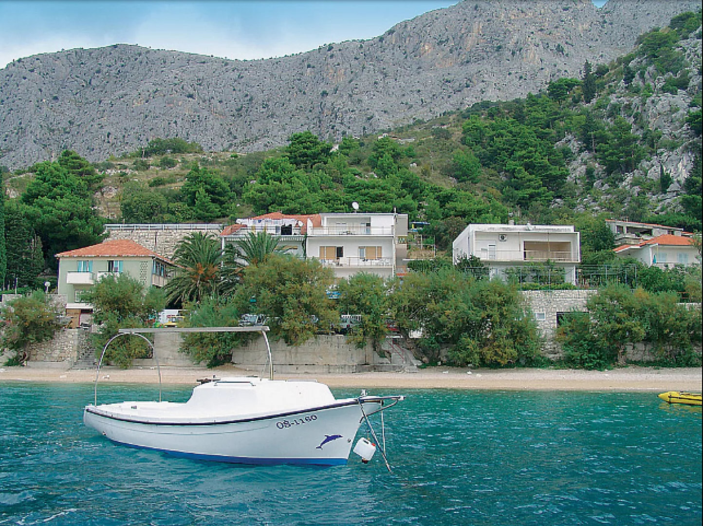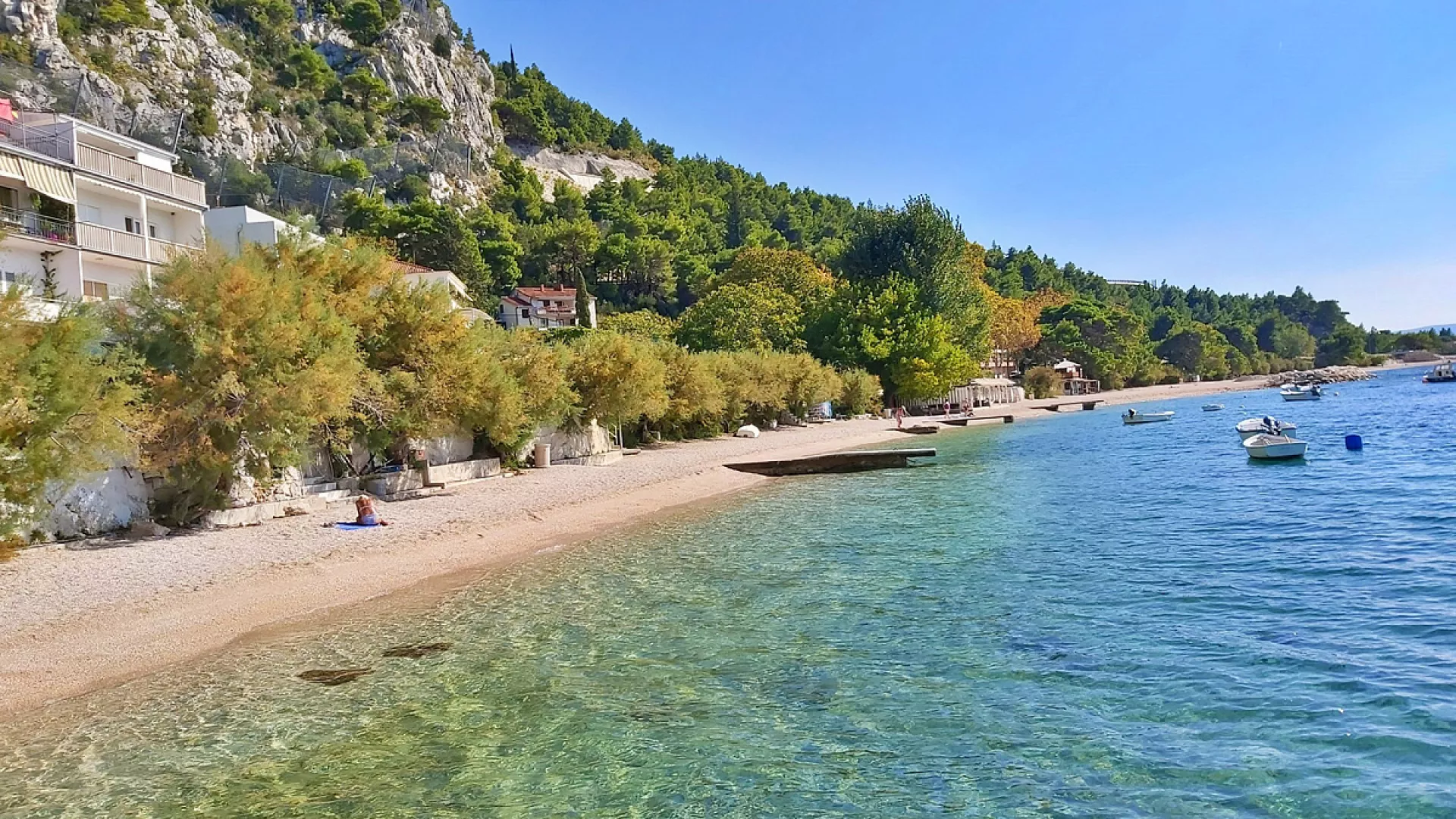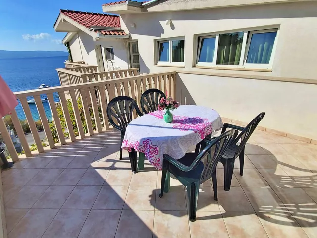 Omiš, centrum - 700 m, pláž / okruhliaková s pozvoľným vstupom do mora - 10 m, letisko Split - 43 km