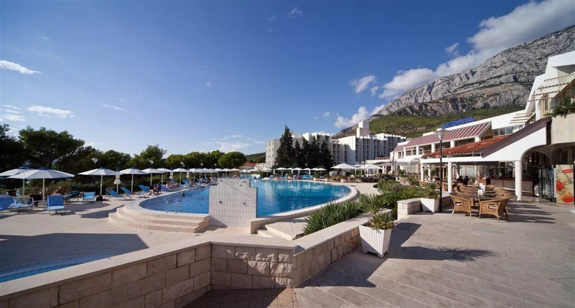 Bluesun Holiday Village Afrodita sa nachádza v blízkosti hotela Alga, približne 400 m od centra letoviska Tučepi. Moderné a komfortné poschodové pavilóny sú zasadené v subtropickej záhrade na miernom svahu nad morom, pričom prístup na pláž je cez prímorskú promenádu.