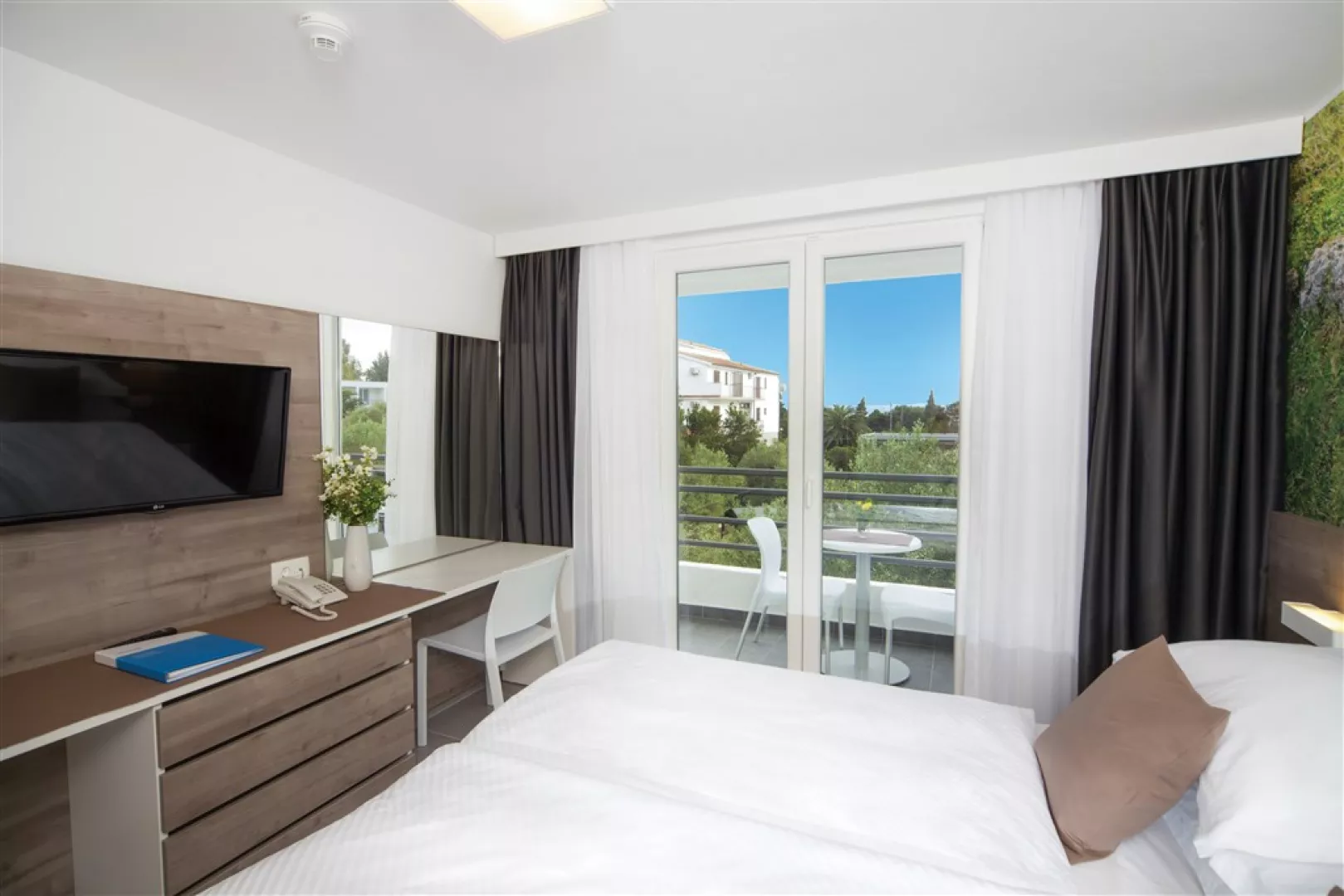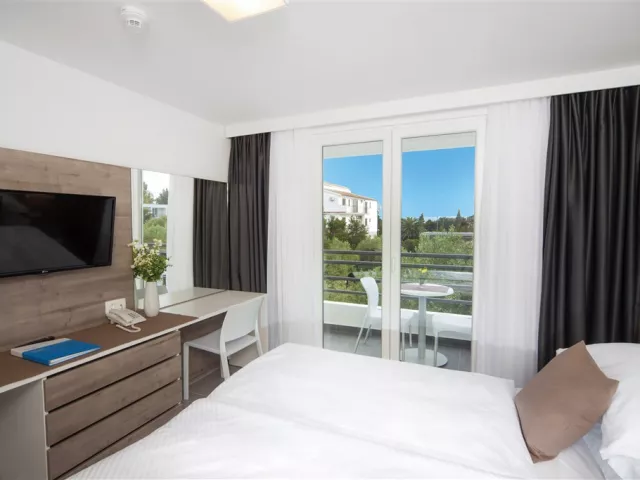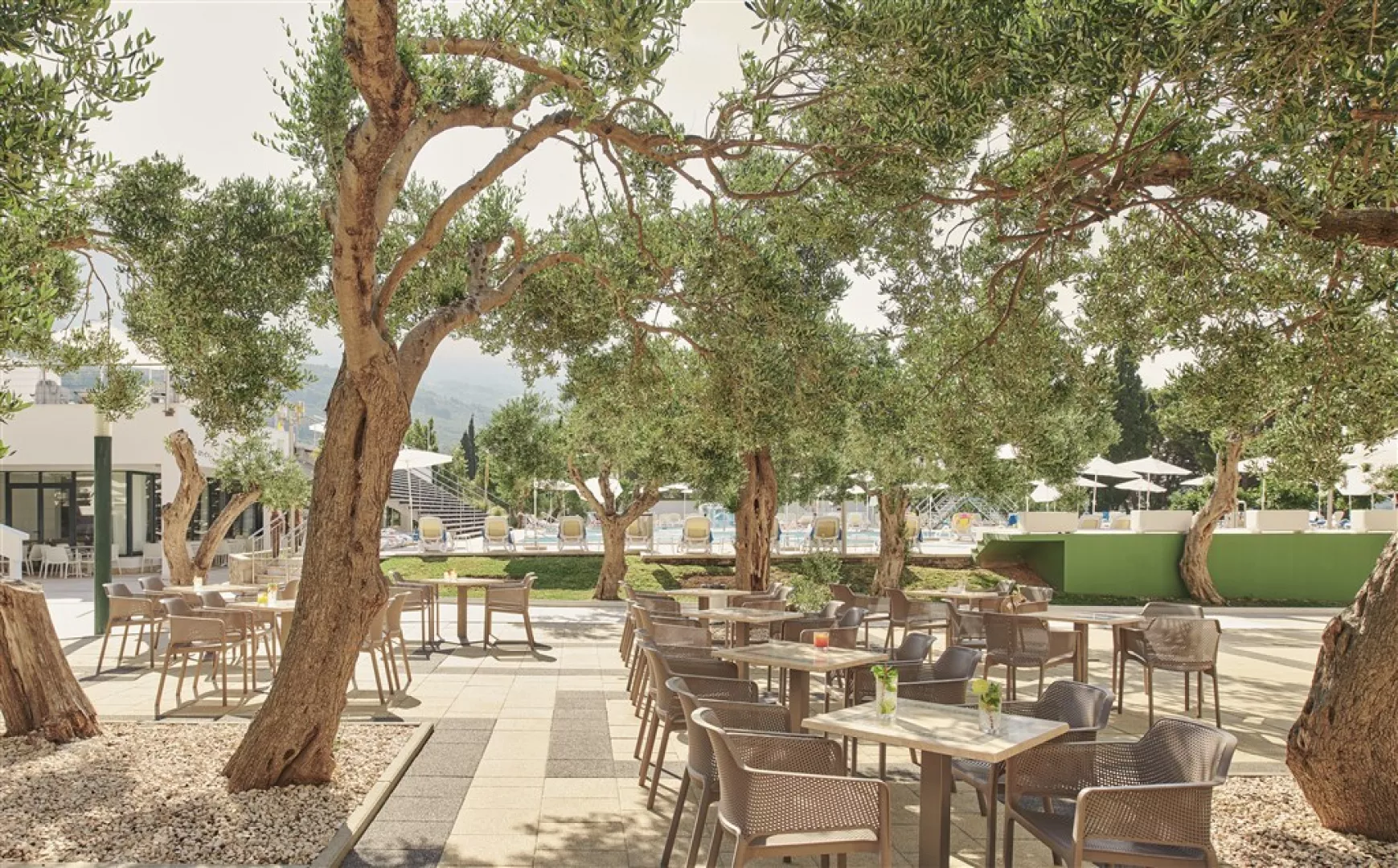 Hotel a jeho depandansy sa nachádzajú priamo pri pláži, oddelené prímorskou promenádou. Pláž má jemný štrk a ponúka ležadlá a slnečníky za príplatok. V blízkosti je aj bazén so sladkou vodou, detský bazén a vonkajšia terasa na slnenie.