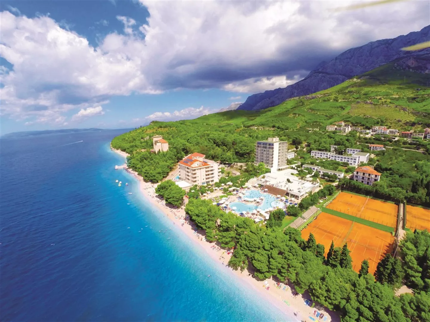 Hotel Bluesun Neptun sa nachádza priamo na pláži, približne 10 minút chôdze od centra letoviska Tučepi, len 5 km od mesta Makarska a 65 km od Splitu. Jeho komplex tvoria hlavná budova a päť dvojpodlažných depandansov umiestnených v olivovom háji, priamo pri štrkovej pláži.