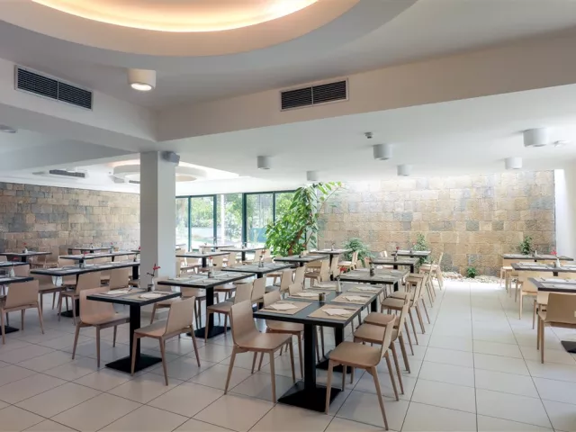 Vybavenie: reštaurácia • aperitív bar • snack bar • zmenáreň • hotelové parkovisko za poplatok 10 €/deň/auto • otvorený veľký a detský bazén so sladkou vodou, s barom a terasou na slnenie • ležadlá a slnečníky pri bazéne zdarma (v obmedz. počte) • detské ihrisko • WiFi internetové pripojenie v celom komplexe zdarma