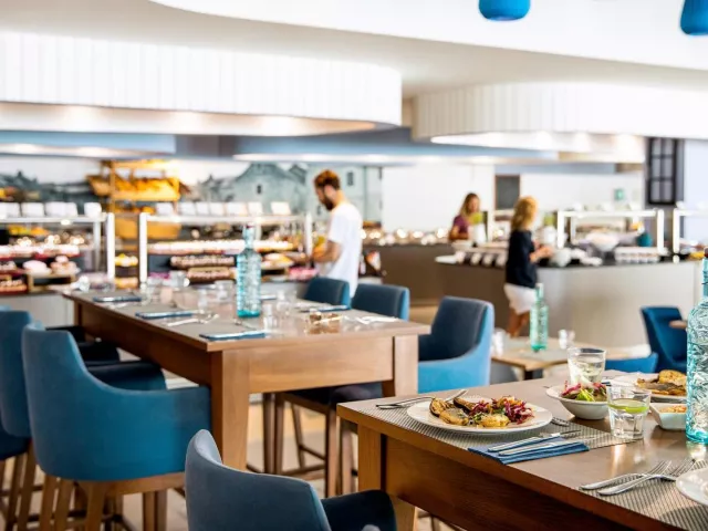 All inclusive zahŕňa privítací nápoj, raňajky, obedy a večere servírované formou bufetu v hlavnej reštaurácii Dalmatino, rôzne medzinárodné jedlá a tematické večere, ako aj miestne čapované nápoje, vrátane piva a vína, počas hlavných jedál a v bare pri bazéne.