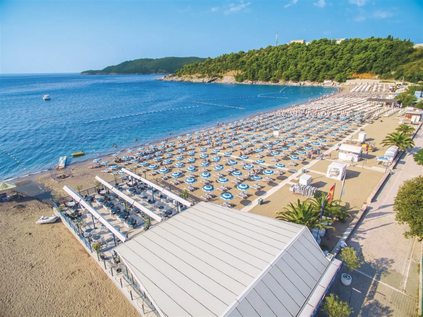 Hotel sa nachádza pri nádhernej pláži v letovisku Bečiči, ktorá je nositeľkou Modrej vlajky za čistotu prostredia a kvalitu piesku. Súkromná pláž vyhradená pre hotelových návštevníkov je vzdialená len 100 metrov. Ležadlá a slnečníky na pláži sú k dispozícii zdarma. Hotel je vzdialený 2 km od Budvy a približne 65 km od letiska Podgorica.