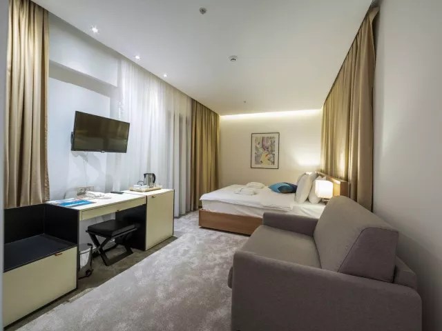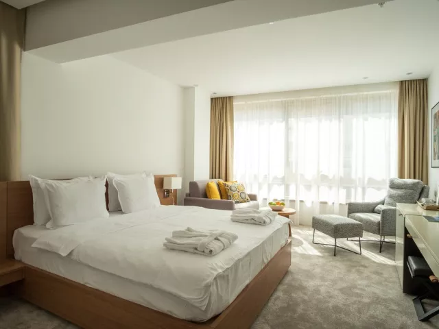Moderné dvojlôžkové izby majú vlastné príslušenstvo (kúpeľňa, WC) a sú vybavené klimatizáciou, minibarom, setom na prípravu kávy alebo čaju, TV, telefónom, trezormi, Wi-Fi a balkónom.
