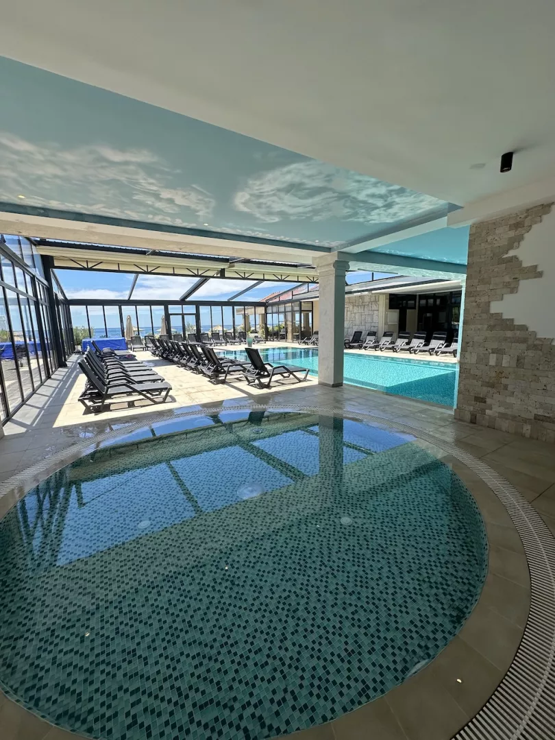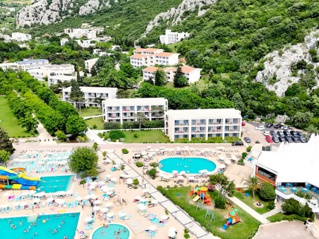 Hotelový komplex Pearl Beach Resort sa nachádza v pokojnom letovisku Čanj. Rezort tvoria tri hlavné budovy (Sun, Marina a Villa Spic) a niekoľko priľahlých depandansov - viliek. Budova Sun obsahuje hlavnú recepciu, zatiaľ čo Marina sa nachádza priamo pri mori. Čerstvo zrekonštruovaná Villa Spic je situovaná v zadnej časti areálu. Rezort sa rozprestiera v krásnej zelenej záhrade priamo pri pláži, ponúka bazény, detský bazén, tobogany a plážový servis (slnečníky a ležadlá zdarma), takže je ideálnou voľbou pre rodiny s deťmi aj páry hľadajúce pohodovú dovolenku.