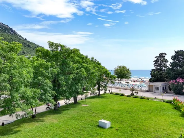 Priamo pri hoteli sa nachádza piesočnato-okruhliaková pláž s pozvoľným vstupom do mora. Ležadlá a slnečníky sú poskytované zdarma (s obmedzenou kapacitou), plážové osušky sú k dispozícii za depozit.
