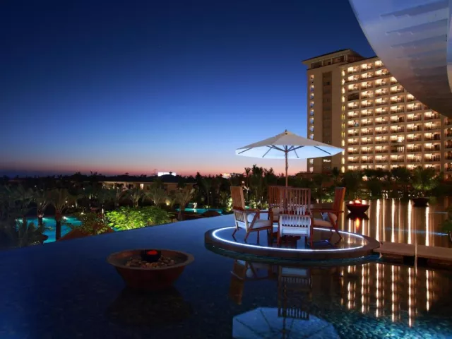Vybavenie: Vstupná hala s recepciou, hlavná reštaurácia, viacero reštaurácií (čínska, kórejská, BBQ, café), lobby bar, bar pri bazéne, vonkajšie bazény (min. 3), krytý / vyhrievaný bazén, spa & wellness centrum (sauna, masáže, horúce kúpele), fitness centrum, tenisové kurty, billiard, detský klub a ihrisko, ihrisko / ihriská pre deti, možnosť detskej starostlivosti (za príplatok), záhrady a rozsiahle areály, bezplatné parkovanie, Wi-Fi v areáli, obchod so suvenírmi, práčovňa, konferenčné miestnosti, business centrum.