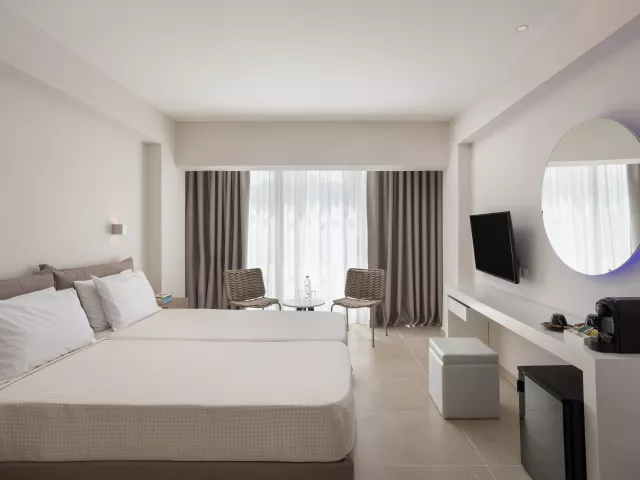 Izby sú vybavené klimatizáciou, Wi-Fi pripojením, kúpeľňou s WC, sušičom vlasov, telefónom (za poplatok), plazmovou TV, trezorom (za depozit), kanvicou (za poplatok) a minibarge (prázdny, nedopĺňa sa). K dispozícii sú rôzne typy izieb: štandardné izby, superior izby a rodinné izby, ktoré sú priestrannejšie a môžu obsahovať pohovku.