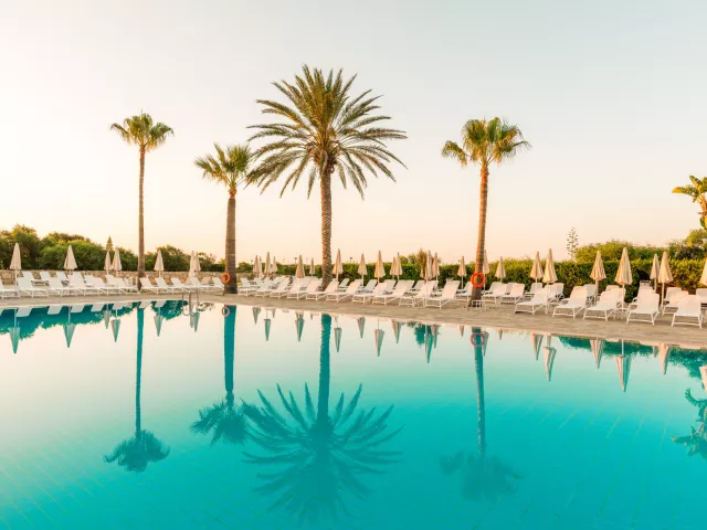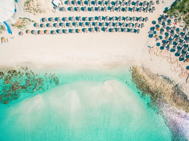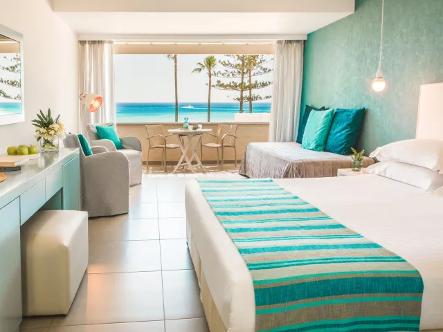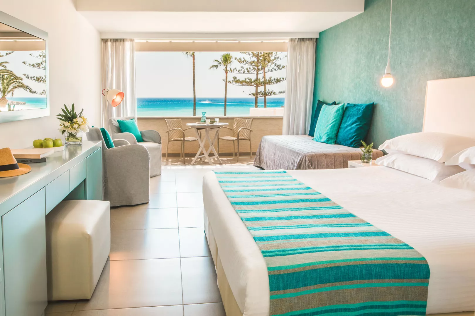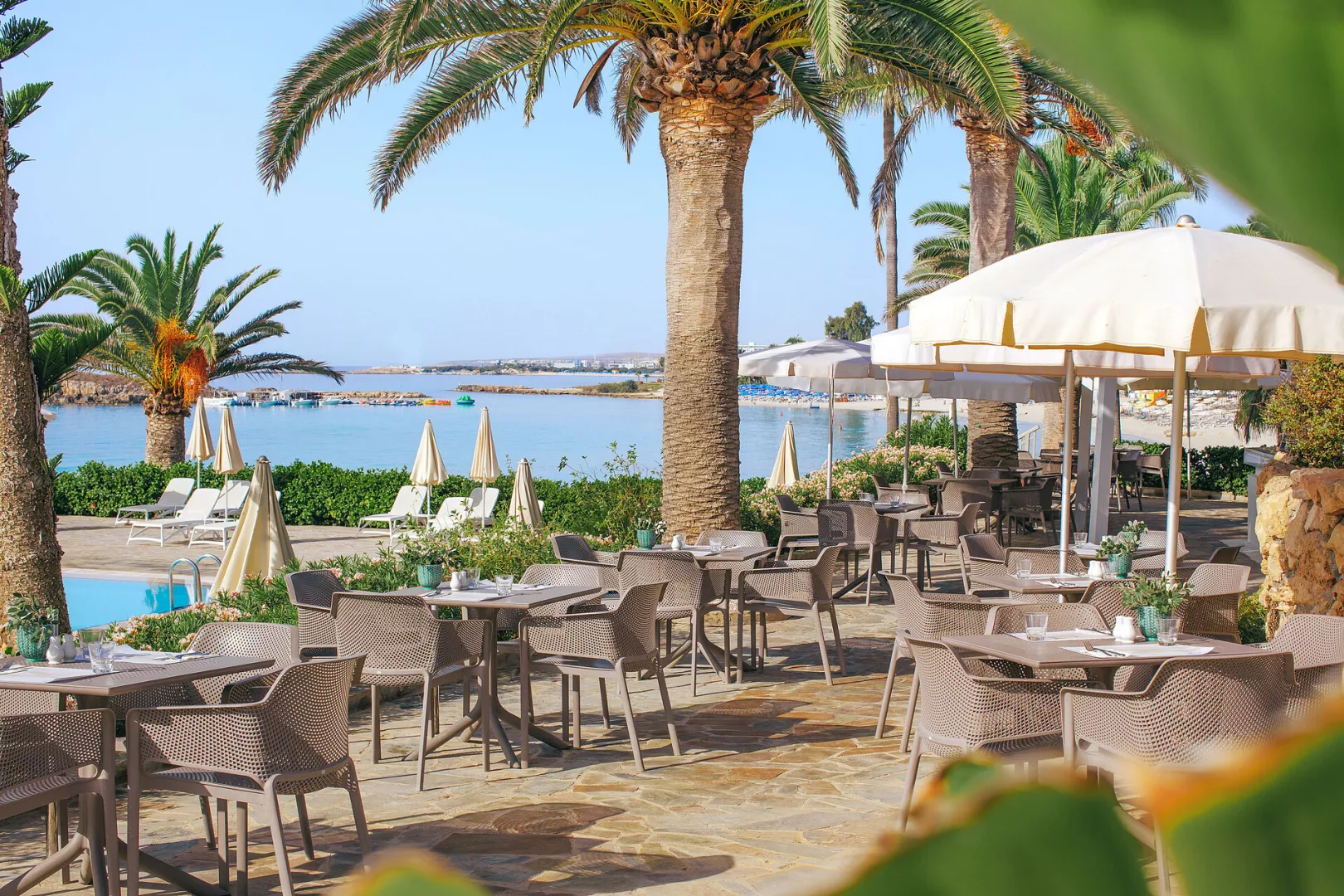 Hotel sa nachádza priamo pri piesočnatej pláži Nissi Beach, ktorá je známa svojím jemným pieskom a pozvoľným vstupom do mora. Plážové osušky sú k dispozícii zdarma, ale lehátka a slnečníky sú za poplatok. K dispozícii sú aj vodné športy (za poplatok) a akreditovaná škola potápania.