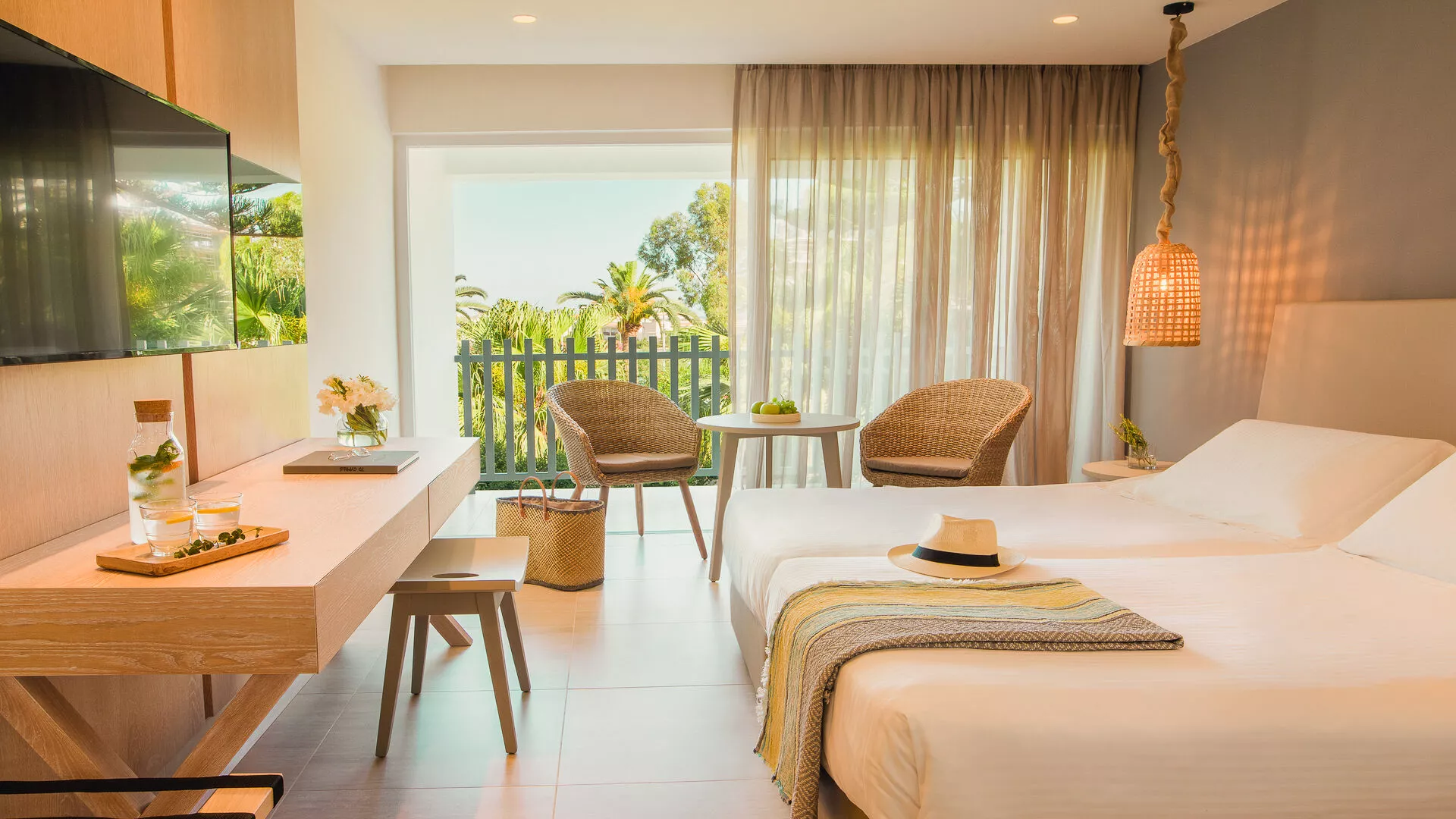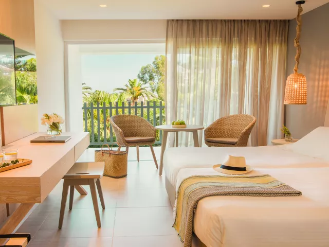 Izby sú vybavené klimatizáciou, SAT TV, telefónom, kúpeľňou s WC, sušičom vlasov, setom na prípravu kávy a čaju, minichladničkou a trezorom (za poplatok). Typy izieb zahŕňajú štandardné izby s výhľadom na záhradu alebo more, plážové bungalovy s výhľadom na more a plážové suity s priamym vstupom do záhrady.