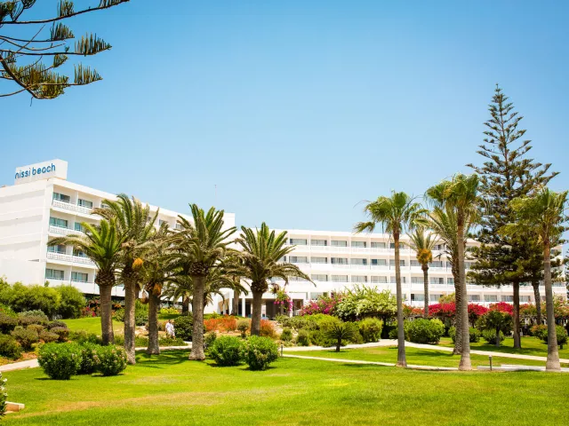 Hotel Nissi Beach Resort sa nachádza približne 45 km od letiska Larnaka, v blízkosti živého centra Ayia Napa, ktoré je vzdialené len 2 km. Okolie hotela ponúka množstvo obchodov, reštaurácií a taverien. Autobusová zastávka je približne 200 m od hotela, a vodný park je taktiež vo vzdialenosti 2 km.