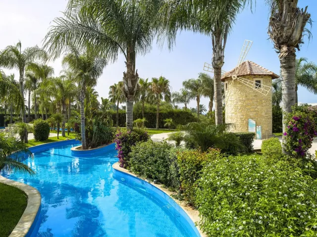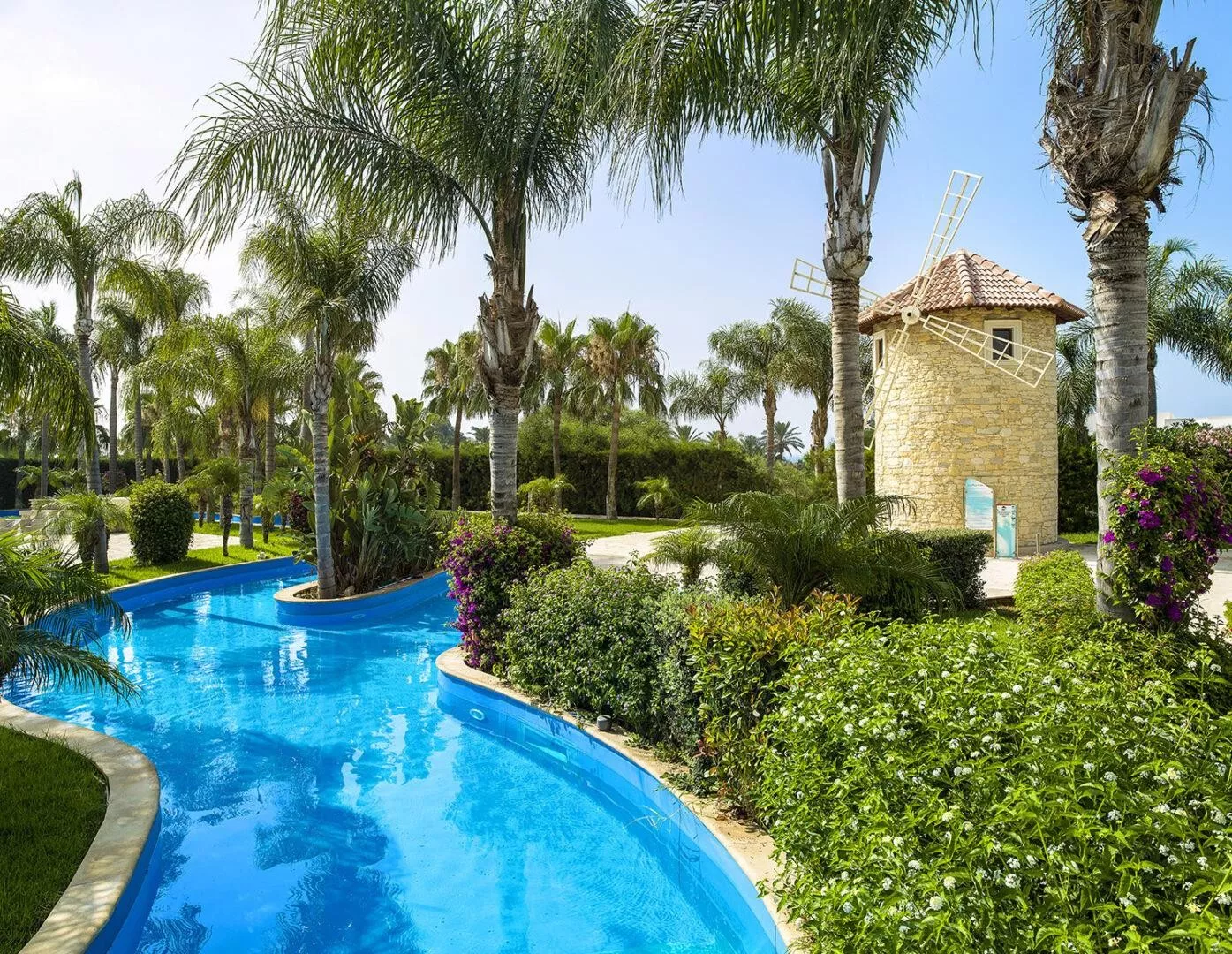 Olympic Lagoon Resort je luxusný hotel, pozostávajúci z niekoľkých budov situovaných v krásne upravených záhradách. Klientom ponúka široký výber ubytovania, od priestranných rodinných izieb po exkluzívne izby pre dospelých. V rezorte sú k dispozícii 4 bary, bar pre teenagerov, hlavná reštaurácia Royal Olympic a tematicky zamerané reštaurácie (americká, grécka, japonská a medzinárodná), pričom niektoré vyžadujú rezerváciu. Okrem toho je tu konferenčná miestnosť, minimarket a herňa pre teenagerov. Samostatná časť Fishermans Village je určená len pre dospelých a poskytuje pokojné prostredie.