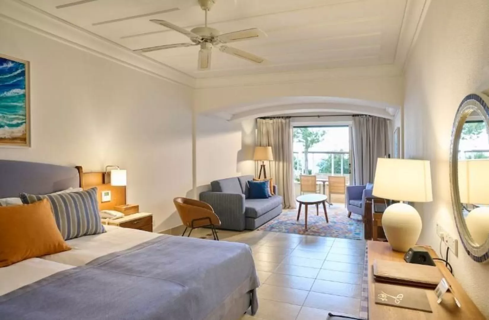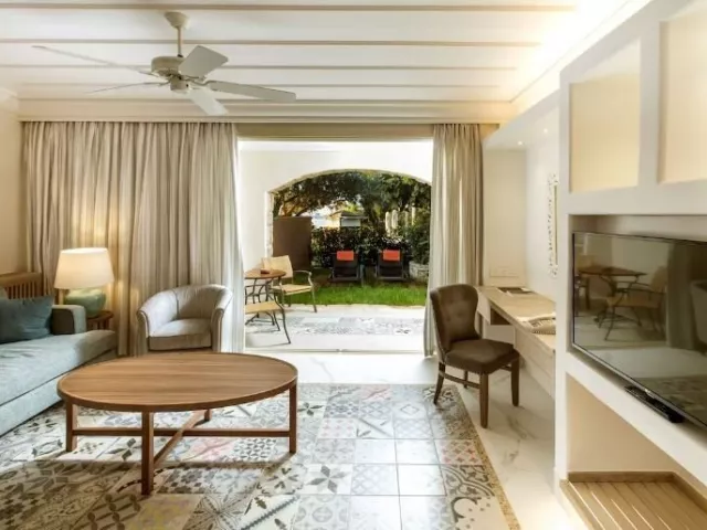 Resort ponúka ubytovanie v 169 suitách rôznych kategórií rozmiestnených v niekoľkých budovách a vilách. Junior suite standard má rozlohu cca 43 m² s jednou dvojlôžkovou alebo dvoma jednolôžkovými posteľami. Vybavenie zahŕňa TV, telefón, set na prípravu kávy/čaju, klimatizáciu, minibar (za poplatok) a vlastné sociálne zariadenie. Každá izba má balkón alebo terasu. Suite executive ponúkajú rovnaké vybavenie, ale sú priestrannejšie s rozlohou cca 60 m² a možnosťou prísteliek pre deti.