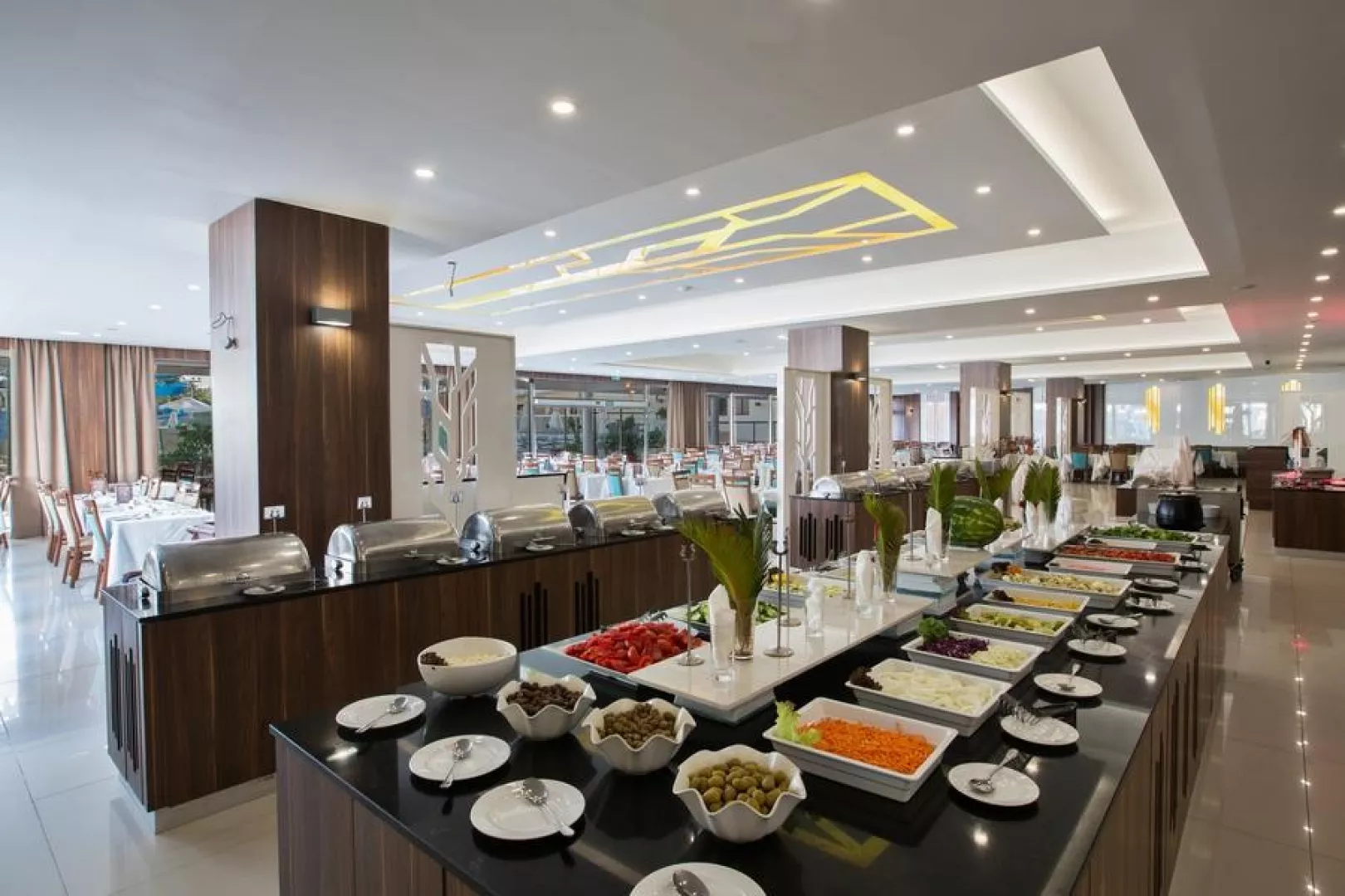 Hotel disponuje elegantnou vstupnou halou s recepciou, viacerými reštauráciami, barom, vnútorným bazénom a konferenčnou miestnosťou. V areáli hotela sa nachádza aj aquapark, terasa na slnenie so slnečníkmi a ležadlami zadarmo, a detský bazén. Na dosah sú detské ihriská a miniklub.