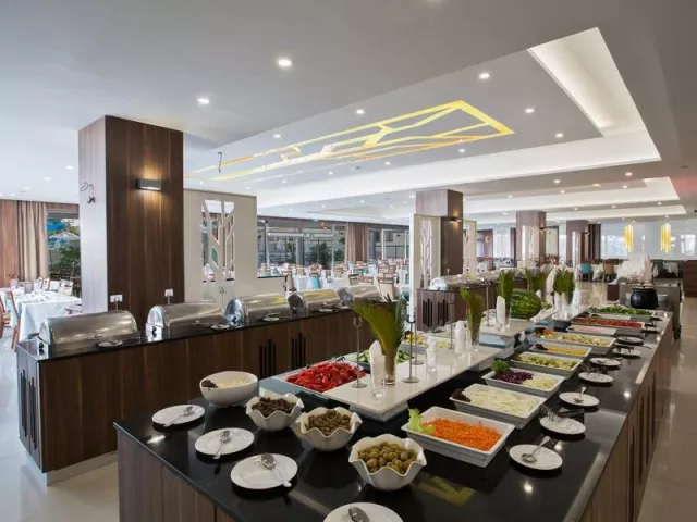K dispozícii je stravovanie formou all inclusive, ktoré ponúka raňajky, obedy a večere vo forme bufetu s možnosťou tematických večerí a občerstvenia počas dňa. Hostia si môžu vychutnať aj miestne alkoholické a nealkoholické nápoje.