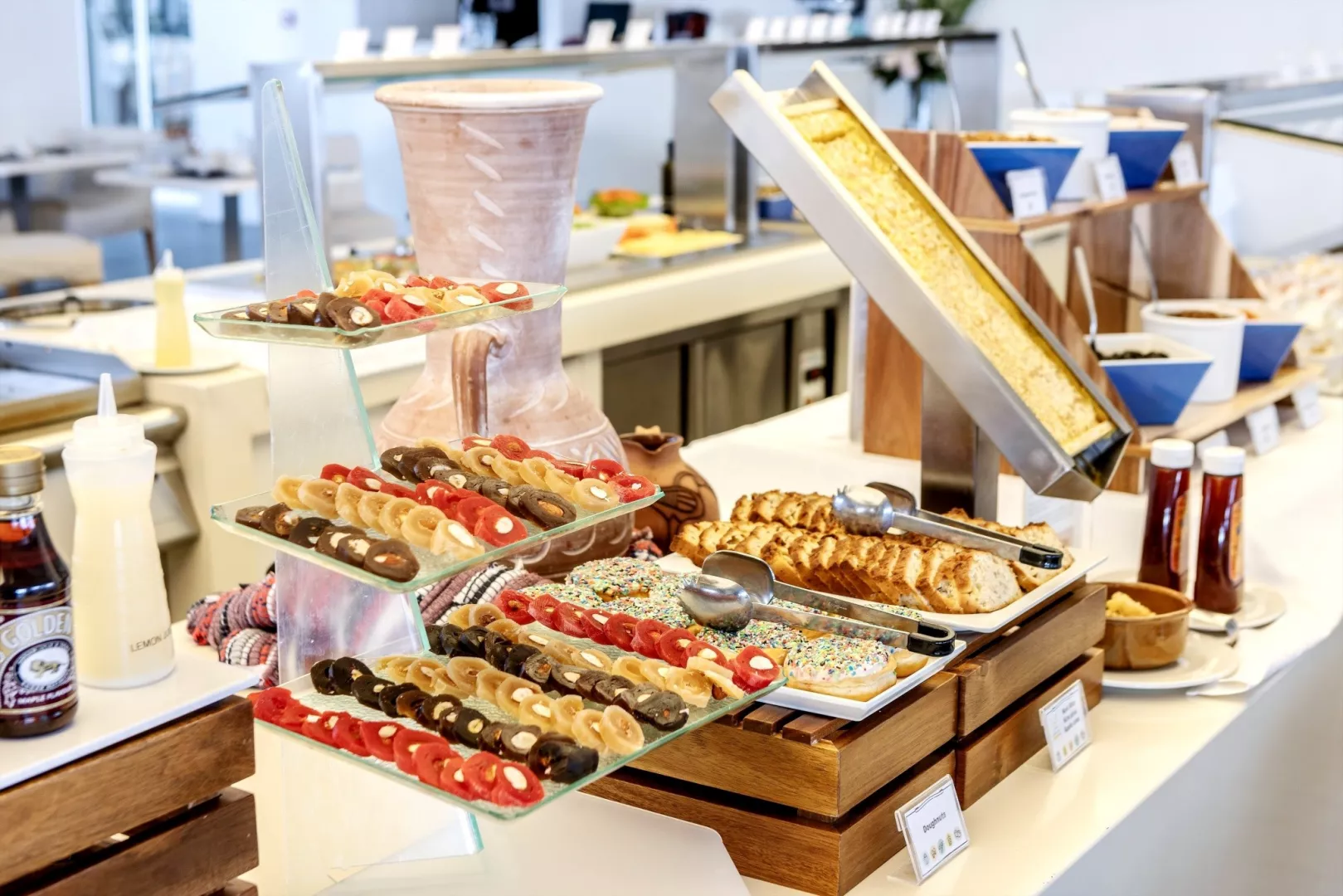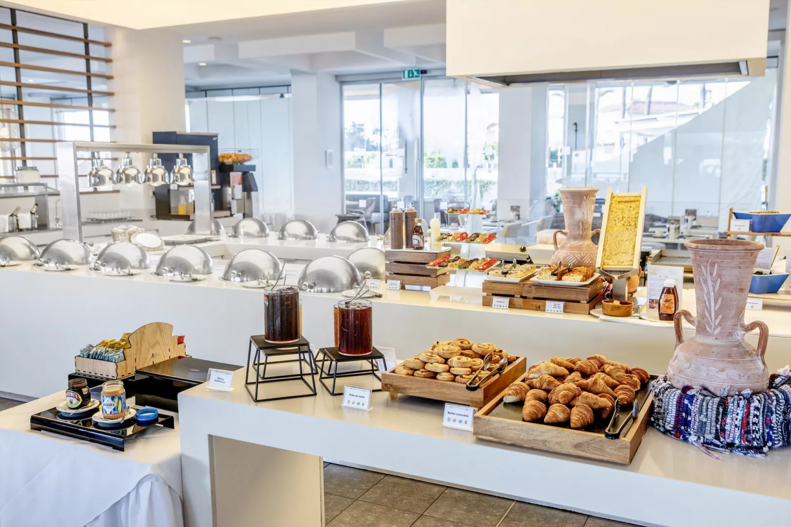 V hoteli sú k dispozícii raňajky formou bufetu a večere formou Dine around, kde si môžete vychutnať výber z 3 chodového menu v niektorých z 5 à la carte reštaurácií (rezervácia je nutná). Možnosti sú aj polpenzia a plná penzia, pričom počas večere sa preferuje formálne oblečenie.