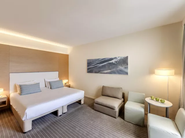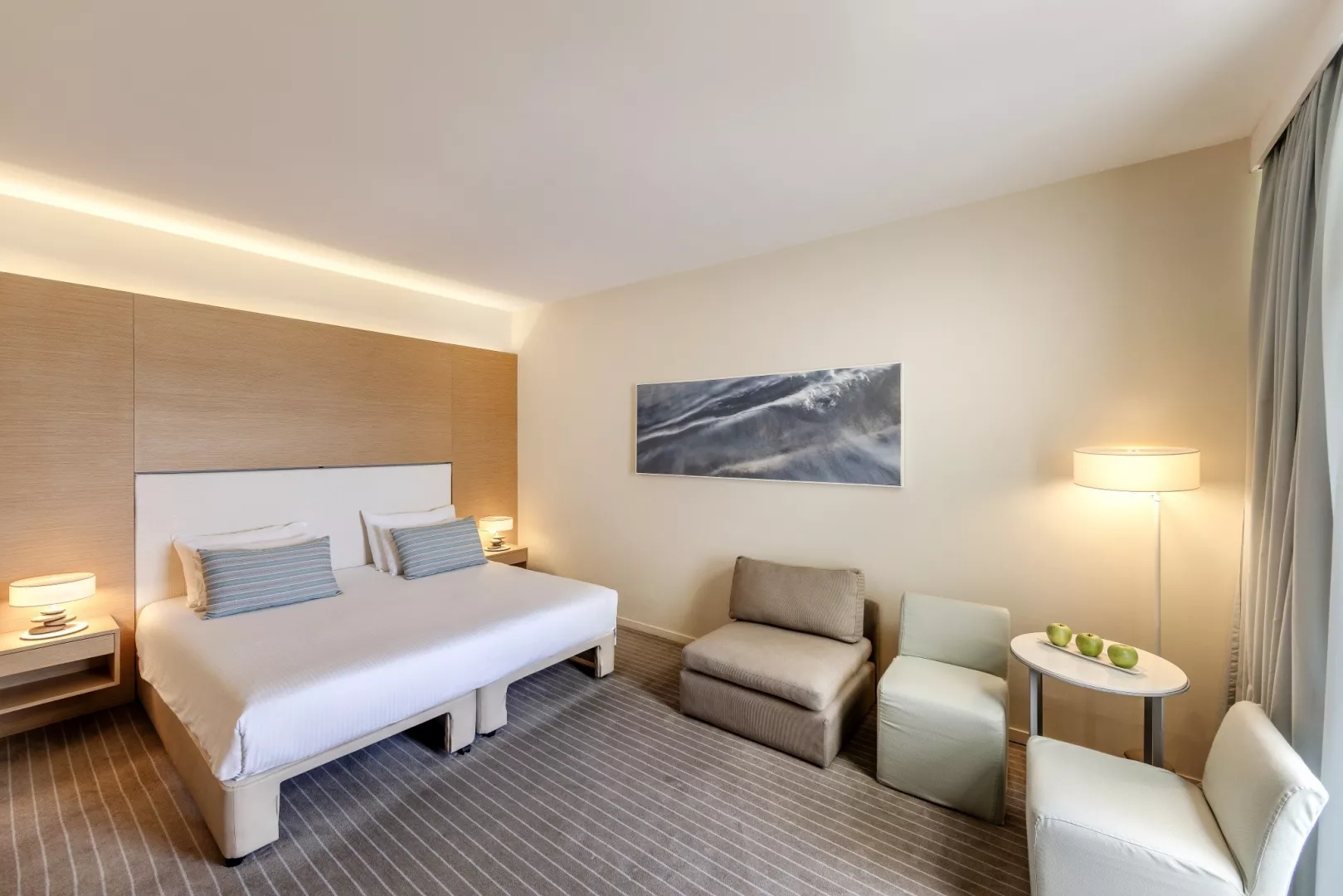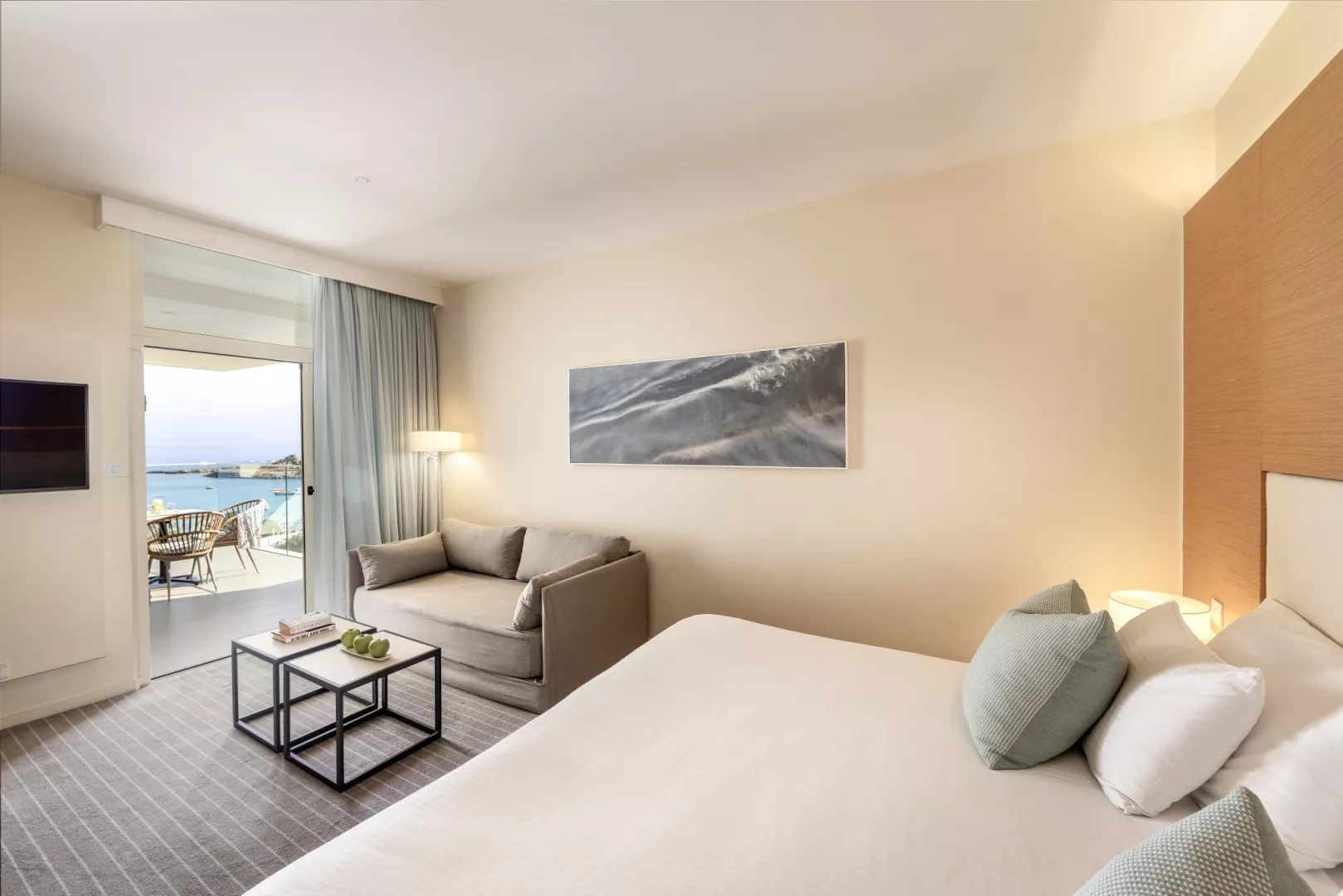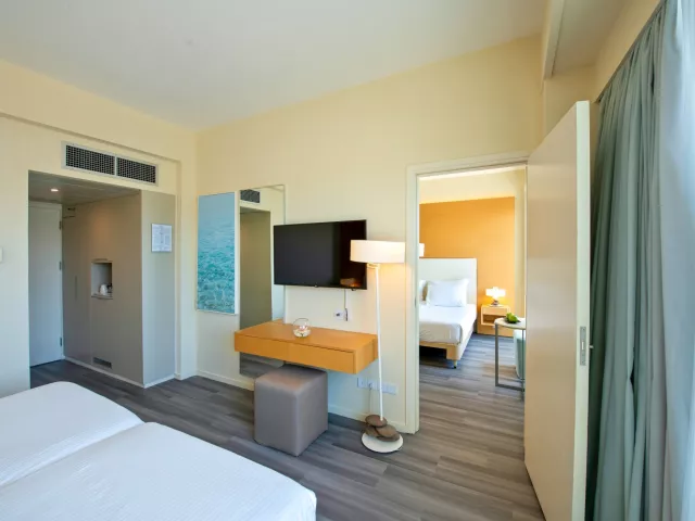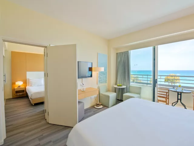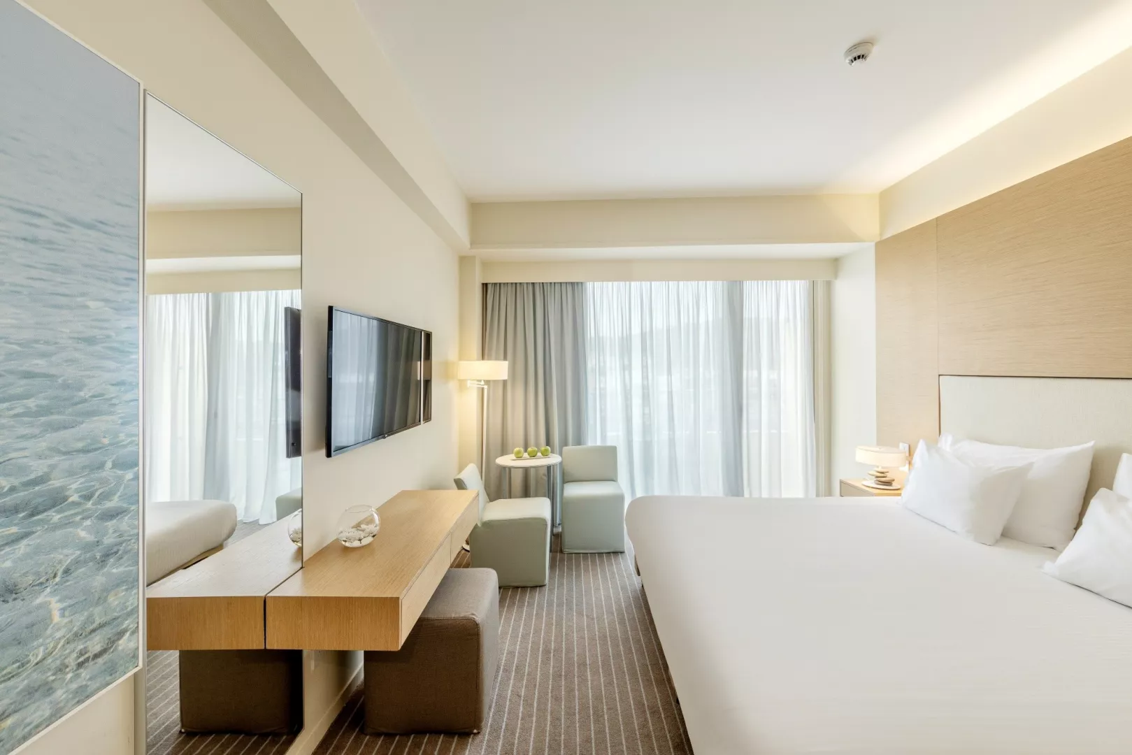 Izby sú vybavené klimatizáciou, TV so satelitným príjmom, telefónom, minibarom, trezorom, súkromnou kúpeľňou (so sušičom vlasov a WC) a setom na prípravu kávy a čaju. Môžete si vybrať medzi dvojlôžkovou izbou, izbou s výhľadom na more, deluxe izbou alebo trojlôžkovou izbou s pohodlnými pohovkami.