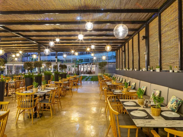 Hotel ponúka vstupnú halu s recepciou, reštauráciu, bar, minimarket a kadernícky salón. Vonku sa nachádza bazén, detský bazén, detské ihrisko a terasa na slnenie s bezplatnými ležadlami, slnečníkmi a osušky. WiFi pripojenie je dostupné zdarma v lobby, internetový kútik v lobby je za poplatok.
