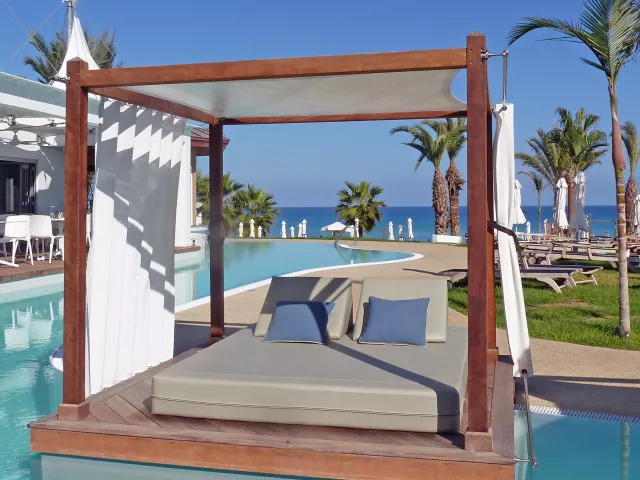 Luxusný hotelový rezort ponúka komfortné ubytovanie v modernej päťposchodovej budove s panoramatickým výhľadom na more. Svojich návštevníkov zaujme kvalitou poskytovaných služieb a bohatou vybavenosťou, ktorá zahŕňa vstupnú halu s recepciou, konferenčnú miestnosť, obchod so suvenírmi, kadernícky salón, wellness centrum a SPA služby. Vonku sú k dispozícii 3 bazény, z toho 2 vyhradené len pre dospelých, terasa na slnenie so slnečníkmi a ležadlami zdarma, a reštaurácia pri bazéne.