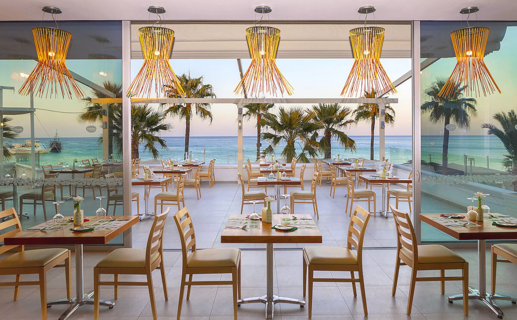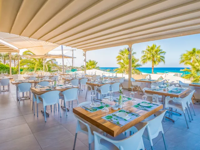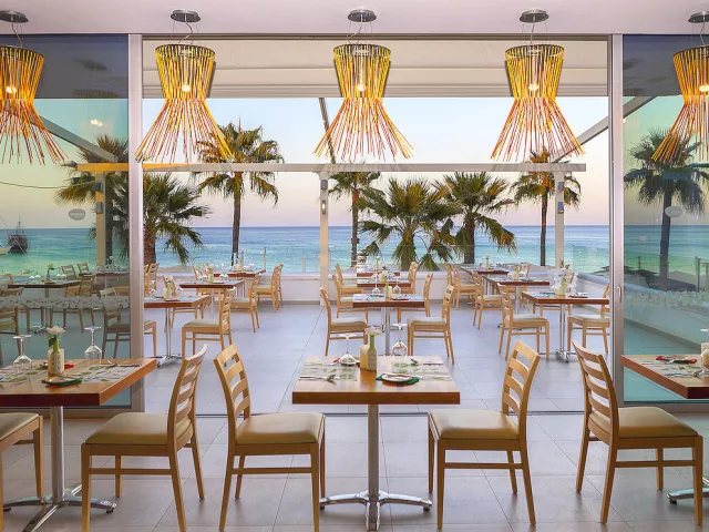 Hotel ponúka polpenziu a all inclusive program. Hlavná reštaurácia "Vryssi" a plážová reštaurácia "Bikini" ponúkajú rôzne medzinárodné jedlá a špeciality. K dispozícii sú aj ľahké občerstvenia počas dňa a vybrané miestne nápoje.