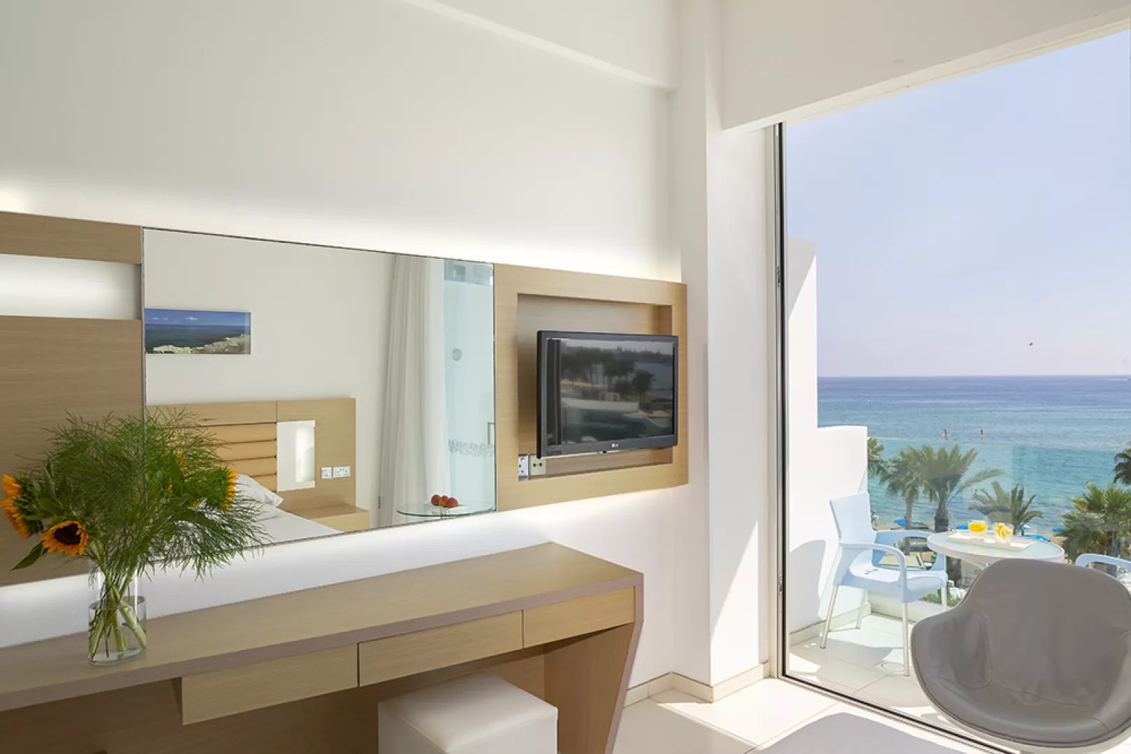 Dvojlôžkové izby sú vybavené kúpeľňou, toaletou, sušičom vlasov, setom na prípravu kávy a čaju, telefónom, trezorom, mini chladničkou a klimatizáciou. Niektoré izby majú výhľad na more a balkón alebo terasu.