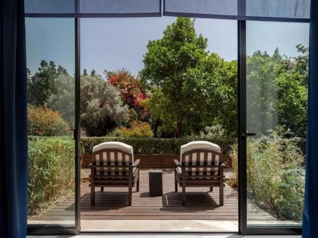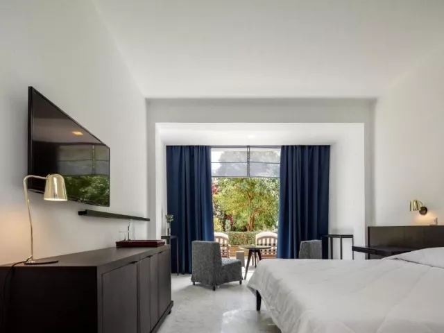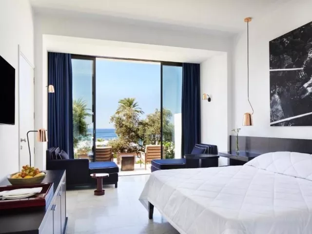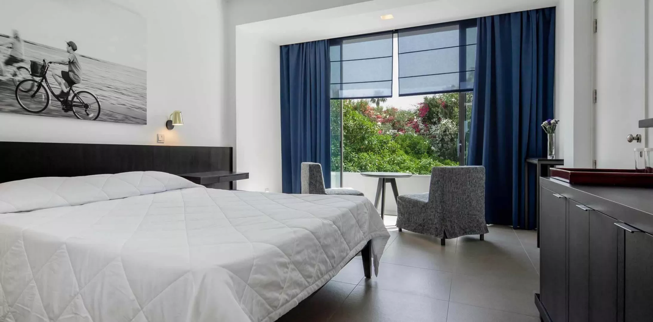 Štandardné izby s veľkosťou 28 m² sú vybavené manželskou alebo dvoma jednolôžkovými posteľami, s možnosťou prístelky. Izby majú vlastné sociálne zariadenie (s vaňou alebo sprchovým kútom), klimatizáciu, televízor/sat, minibar (za príplatok) a set na prípravu kávy/čaju s bezplatným WiFi. Za príplatok sú k dispozícii izby s balkónom alebo terasou a výhľadom na more. Prémiové suity sú niekoľko krokov od mora a ponúkajú väčší priestor (asi 47 m²) s terasou a výhľadom na more.
