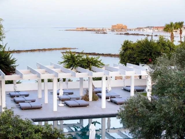 Plážový hotel Almyra sa nachádza v južnej časti Pafosu, len 400 metrov od turistického centra so širokým spektrom nákupných možností a barov. Autobusová zastávka je vzdialená 200 metrov, archeologické nálezisko Nea Paphos je približne 1 km, Kráľovské hrobky 3 km a historické centrum Pafosu 3,5 km. Medzinárodné letiská Pafos a Larnaka sú vzdialené asi 17 km a 135 km.