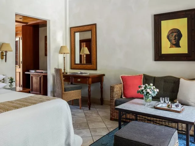 Izba Deluxe: Izby majú veľkosť cca 34 m² a sú vybavené 1 dvojlôžkovou alebo 2 jednolôžkovými postelí. Vybavenie zahŕňa vlastné sociálne zariadenie (kúpeľňa s vaňou alebo sprchovým kútom, fén, WC), klimatizáciu, TV/satelit, minibar (za príplatok), trezor, set na prípravu kávy/čaju a bezplatné WiFi. K dispozícii je balkón alebo terasa s výhľadom do okolia, s čiastočným výhľadom na more alebo s výhľadom na more. Studio Royal s výhľadom do záhrady (iba pre osoby staršie ako 16 rokov): Apartmán s rozlohou 40 m² s 1 dvojlôžkovou posteľou sa nachádza v susednej budove určenej iba pre osoby staršie ak 16 rokov, vybavenie je rovnaké ako v izbe deluxe, k dispozícii je balkón alebo terasa.