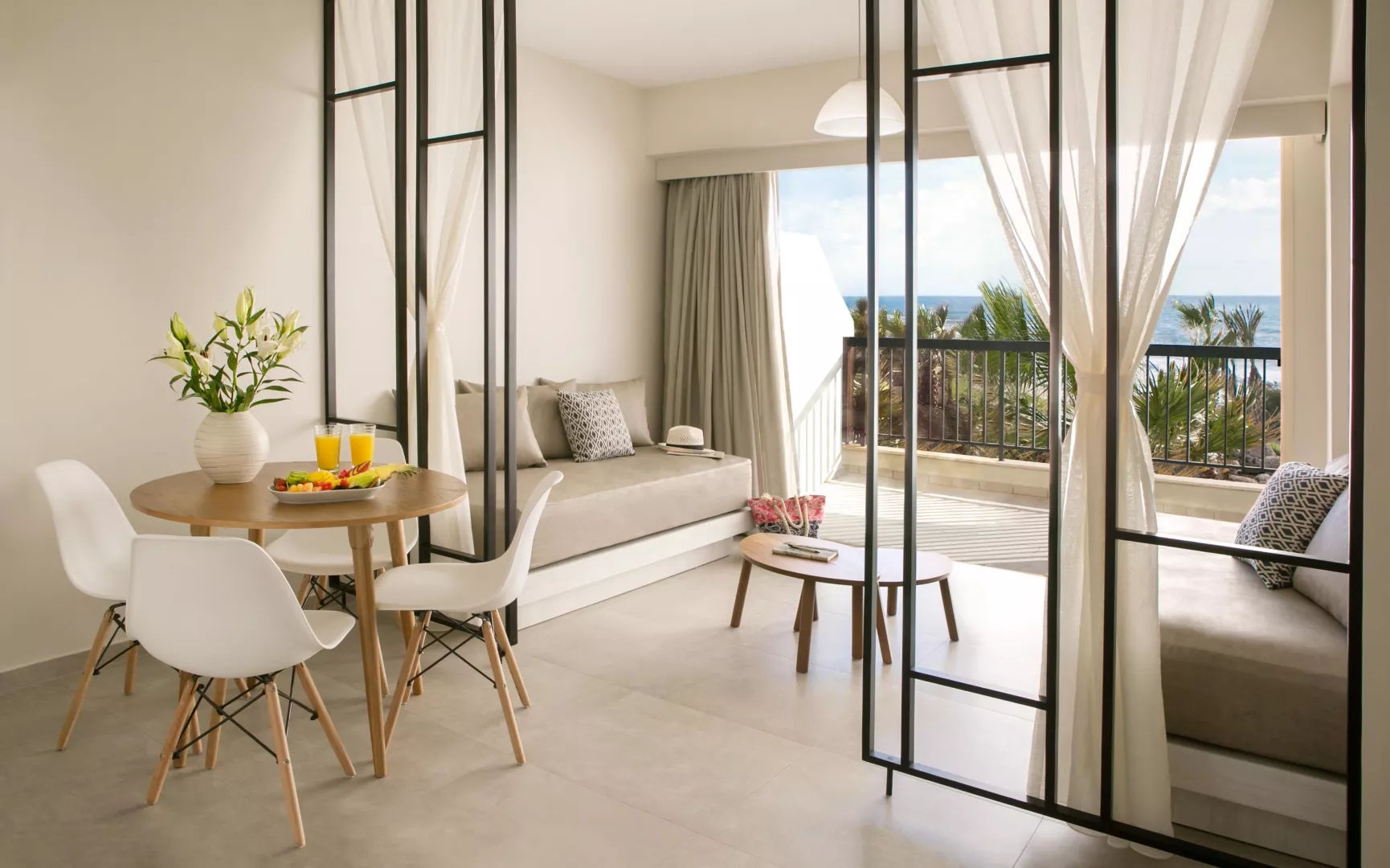 Izby sú vybavené kúpeľňou, samostatným WC, sušičom vlasov, fľašou vody a ovocím po prílete, setom na prípravu kávy a čaju, trezorom, klimatizáciou, telefónom, minibarom (za poplatok), chladničkou, TV/sat. a balkónom alebo terasou. V ponuke sú štúdiá s výhľadom na bazén alebo bočný výhľad na more a suity s oddelenou spálňou a obytnou časťou, taktiež s výhľadom na bazén alebo more.