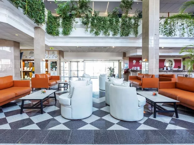 Hotel ponúka vstupnú halu s recepciou, lobby bar, hlavnú reštauráciu, reštauráciu à la carte, obchod so suvenírmi, minimarket, konferenčnú miestnosť a spoločenskú miestnosť s TV/sat. Vonku nájdete bazén, detský bazén, vodný park so šmykľavkami, terasu na slnenie a bar pri bazéne. Lehátka a slnečníky sú k dispozícii zdarma.