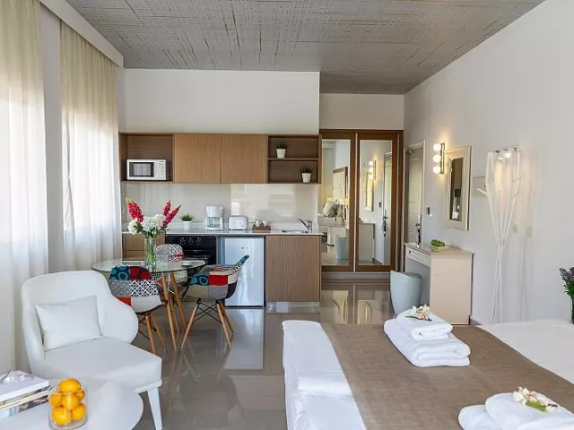 Izby sú vybavené štandardným zariadením: kúpeľňa, WC, sušič vlasov, klimatizácia, trezor, minibar (za poplatok), kuchynský kút s chladničkou, set na prípravu kávy a čaju, TV/sat a balkón alebo terasa. Suita disponuje oddelenou spálňou. K dispozícii sú aj suite typy, ako Executive.