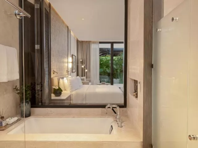 Všechny pokoje jsou vybaveny mahagonovým nábytkem, minibarem, žehlící soupravou, SAT TV, radiem, koupelnou/WC. Pokoje mají terasu s výhledem do zahrady. Návštěvníci mohou být ubytováni buď v komfortních, ale konvenčních pokojích nebo si také mohou pronajmout celou vilu s několika ložnicemi, obývacím pokojem a privátním bazénem. POKOJE: každý pokoj je vybaven koupelnou s WC, sprchou a vanou nebo vířivkou, klimatizací, fénem na vlasy, LCD TV se satelitem, Blu-Ray přehrávačem, rádiem s dokovací stanicí pro iPod či iPhone, WiFi, telefonem, minibarem, kávovarem, trezorem a pěknou terasou. VILKY: nabízejí od tří do pěti ložnic, každá je klimatizovaná, má televizi a oddělenou koupelnu. V každé vile je plně vybavená kuchyně, obývací a jídelní část a privátní vířivka nebo bazén.