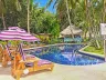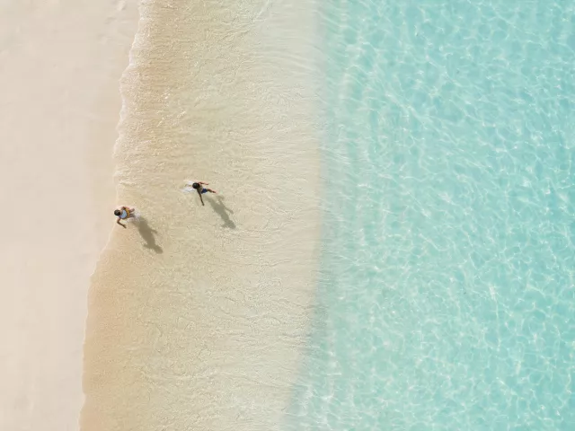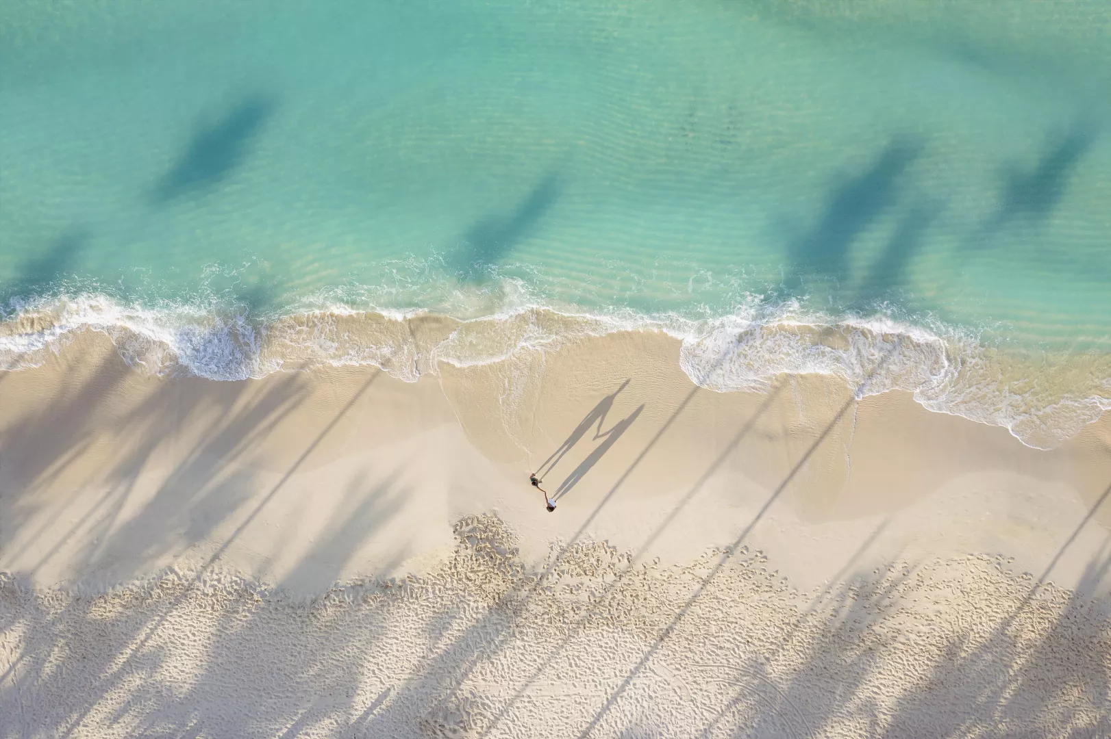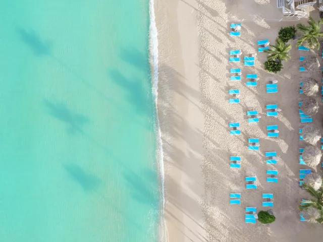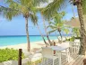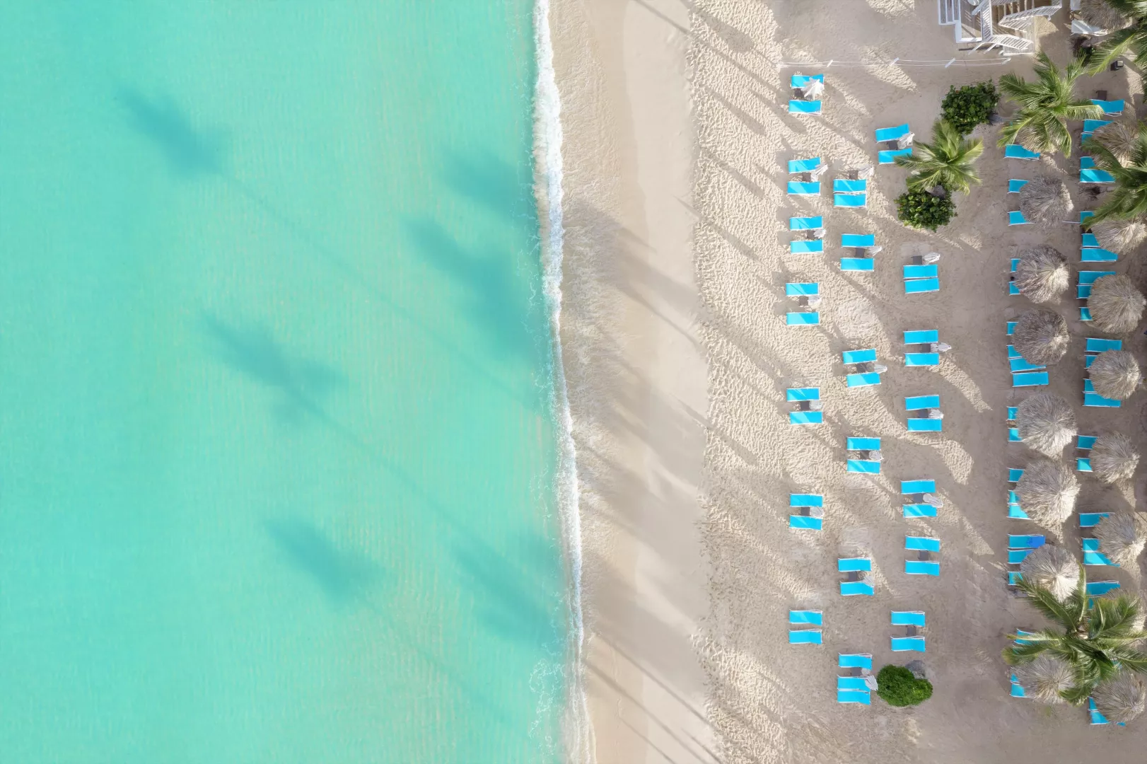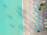 Krásna piesočná pláž s jemným bielym pieskom je priamo pri hoteli, lehátka a slnečníky zadarmo.