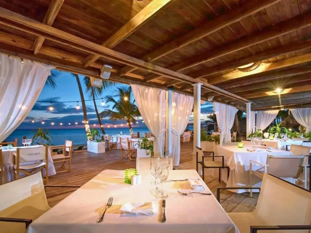 Program All inclusive Raňajky, obed a večera formou bufetu Stravovanie v à la carte reštauráciách (nutná rezervácia vopred) Alkoholické a nealkoholické nápoje miestnej výroby, čerstvé džúsy v plážovom bare Fitness, tenis, basketbal, futbal, aerobik, aquaaerobik, plážový futbal, lekcie tanca, nemotorizované športy, windsurfing, kajaky, úvodné lekcie potápania v bazéne Privileged club Separátna časť pláže 10% zľava na služby spa Plážové osušky na izbe Reštaurácia Tapas pri pláži ponúkajúca raňajky, obed a večeru - všetko formou à la carte Early check-in a late check-out do 15:00 (v závislosti od obsadenosti hotela)
