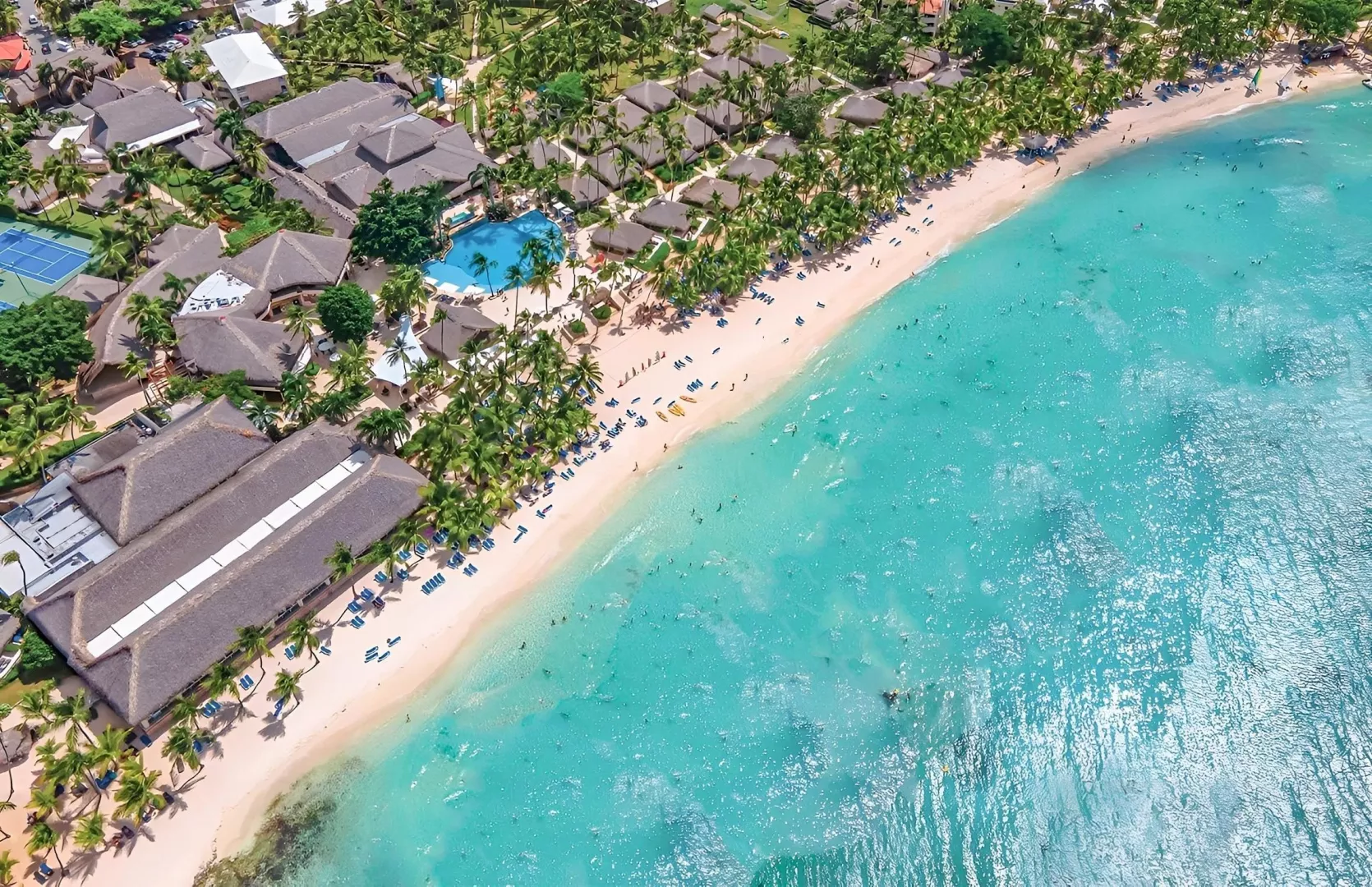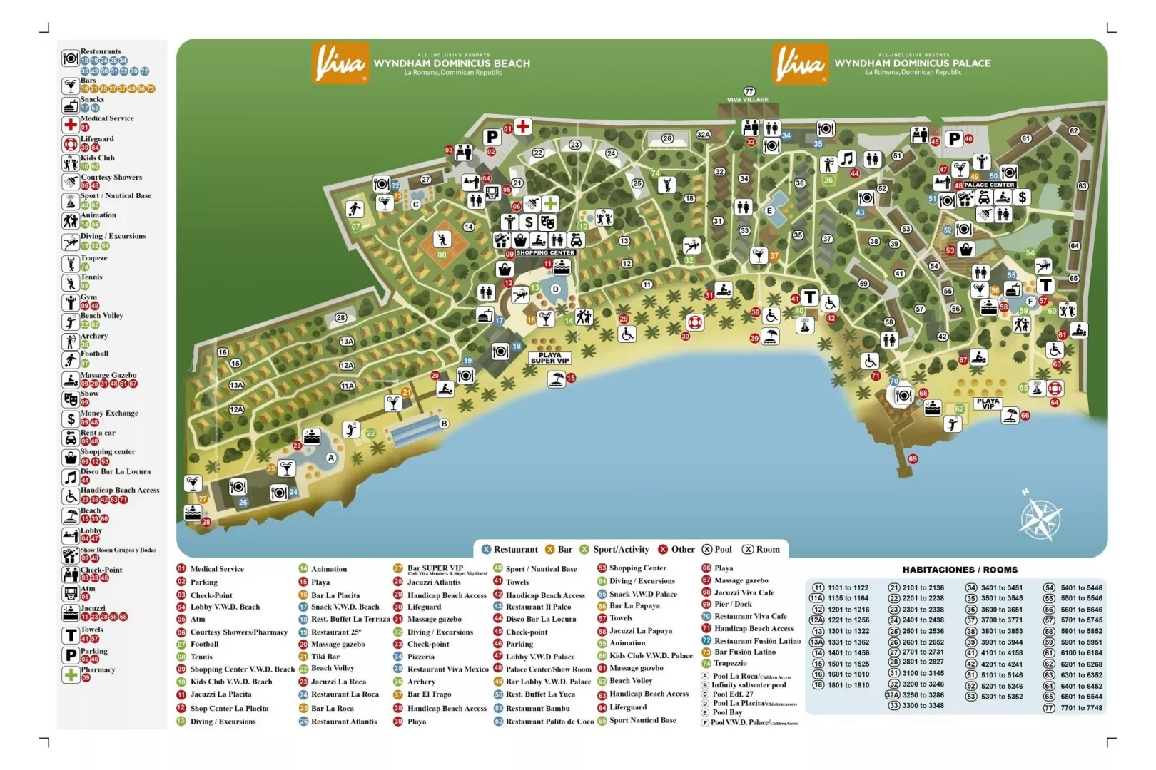 Viva Wyndham Dominicus Beach ponúka 692 izieb a širokú škálu služieb, vrátane 5 bazénov, z ktorých 2 sú určené pre deti, a 1 infinity bazén so slanou vodou. K dispozícii sú 5 barov a 7 reštaurácií, vrátane bufetovej a rôznych à la carte možností. Klienti môžu využiť aj reštaurácie v sesterskom hoteli Viva Wyndham Dominicus Palace a ďalšie služby ako požičovňa áut či obchod so suvenírmi.