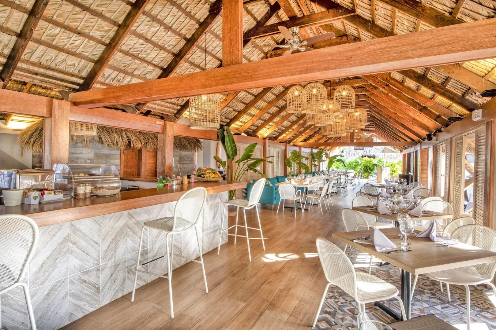 Dvojlôžkové izby sú vybavené kúpeľňou, klimatizáciou, TV, chladničkou a balkónom alebo terasou. Ostatné typy izieb, ako priestrannejšie superior izby a bungalovy s výhľadom na záhradu či oceán, sú tiež dostupné s podobným vybavením a väčšími terasami.