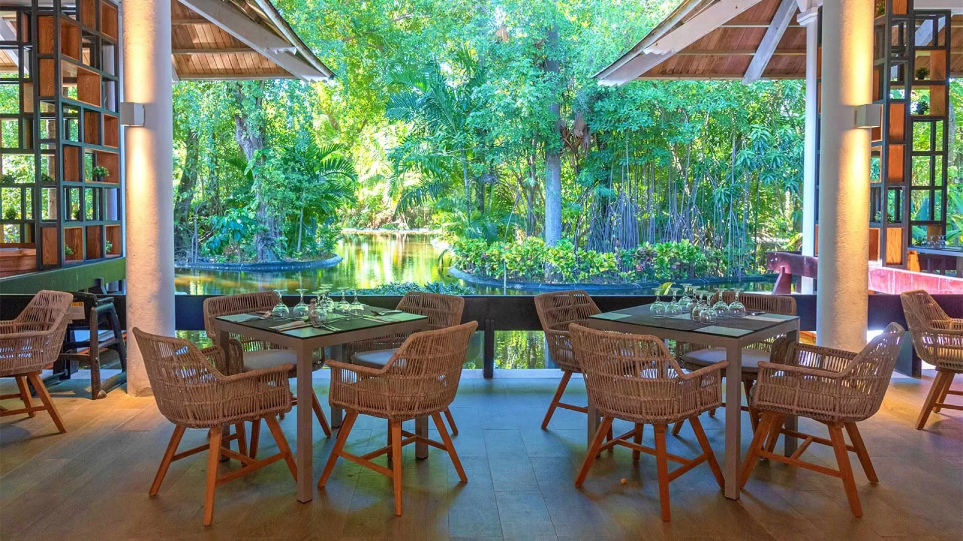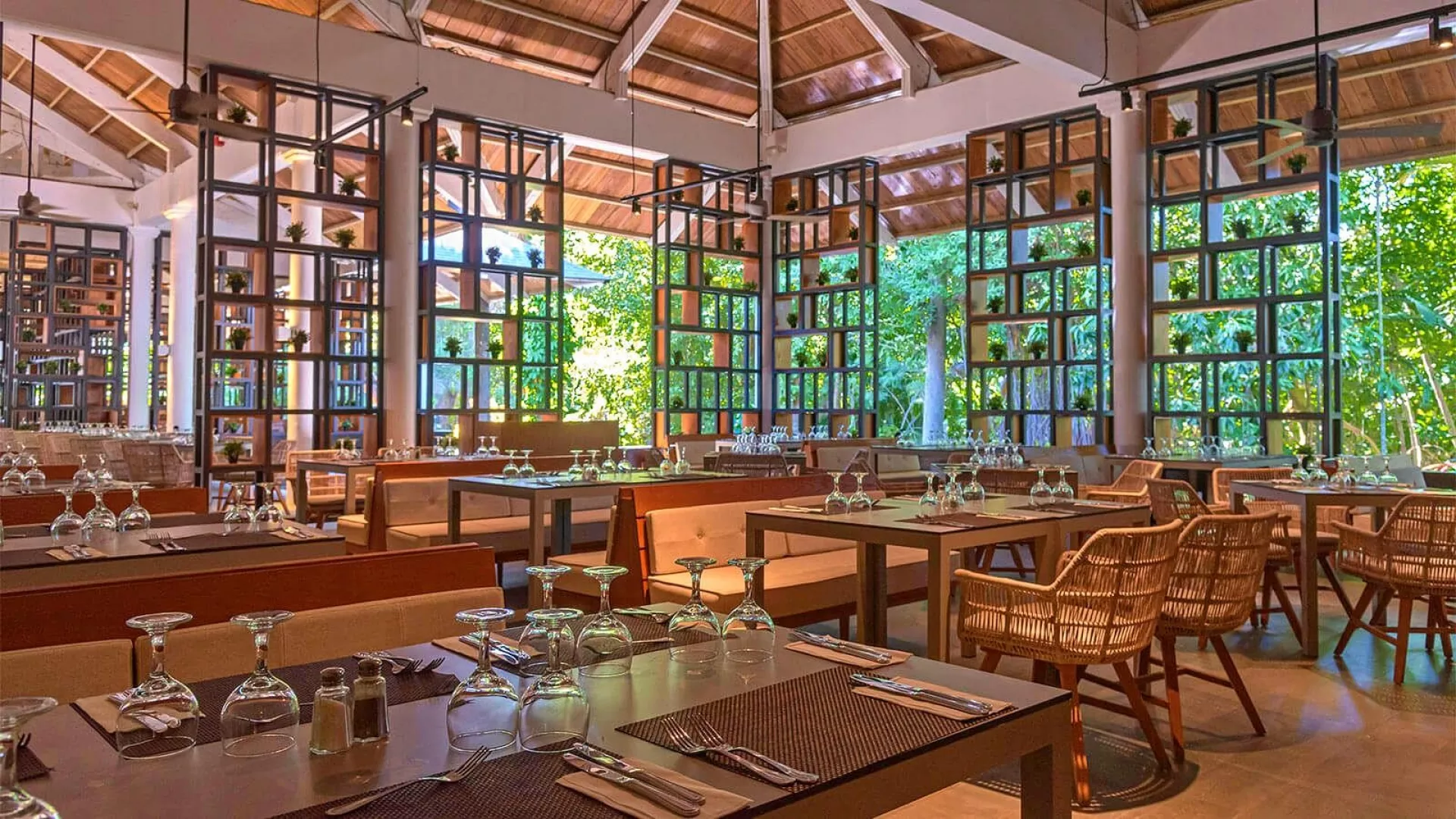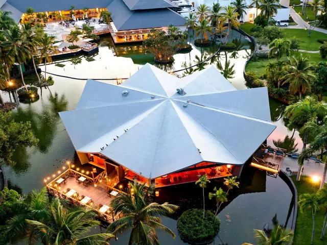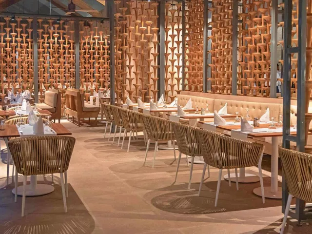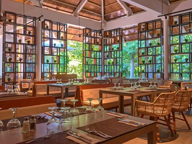 All Inclusive: Hlavná reštaurácia: 07.00–11.00 raňajky formou bufetu, 13.00–15.00 obedy formou bufetu, 18.30–22.00 večera formou bufetu, nealkoholické a vybrané alkoholické nápoje (všetko miestnej výroby, rozlievané) Bufet na pláži: 7.00–11.45 raňajky formou bufetu, 12.30–16.00 obed formou bufetu Food truck: 11.00–18.00 ľahké občerstvenie Tematické reštaurácie: 18.00–22.00, vyžadované formálne oblečenie, rezervácia nutná Športový bar (Lobby bar): 24 hodín, občerstvenie, nealkoholické a vybrané alkoholické nápoje Kaviareň: 10.00–19.00 Bary: 8.00–1.00 neobmedzené množstvo rozlievaných nealkoholických a vybraných alkoholických nápojov miestnej výroby Upozornenie: vyššie uvedené časy aj miesta podávania sú určené hotelom a môžu sa zmeniť. Na večeru je vyžadované formálne oblečenie.
