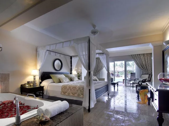 Izby sú vybavené komfortnou junior suitou s výhľadom do záhrady alebo na bazén, s dvoma umývadlami, sušičom vlasov, klimatizáciou, minibarom, terasou s nábytkom a ďalšími pohodlnými prvkami. K dispozícii sú aj rozšírené typy izieb s priamym prístupom do bazéna.